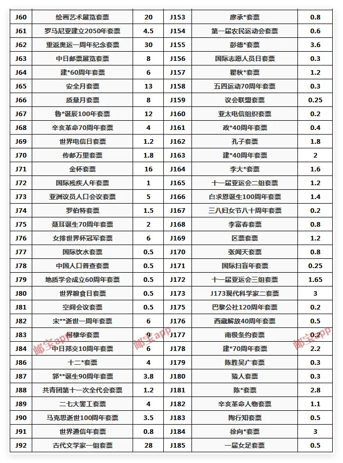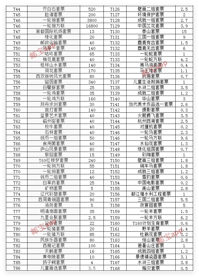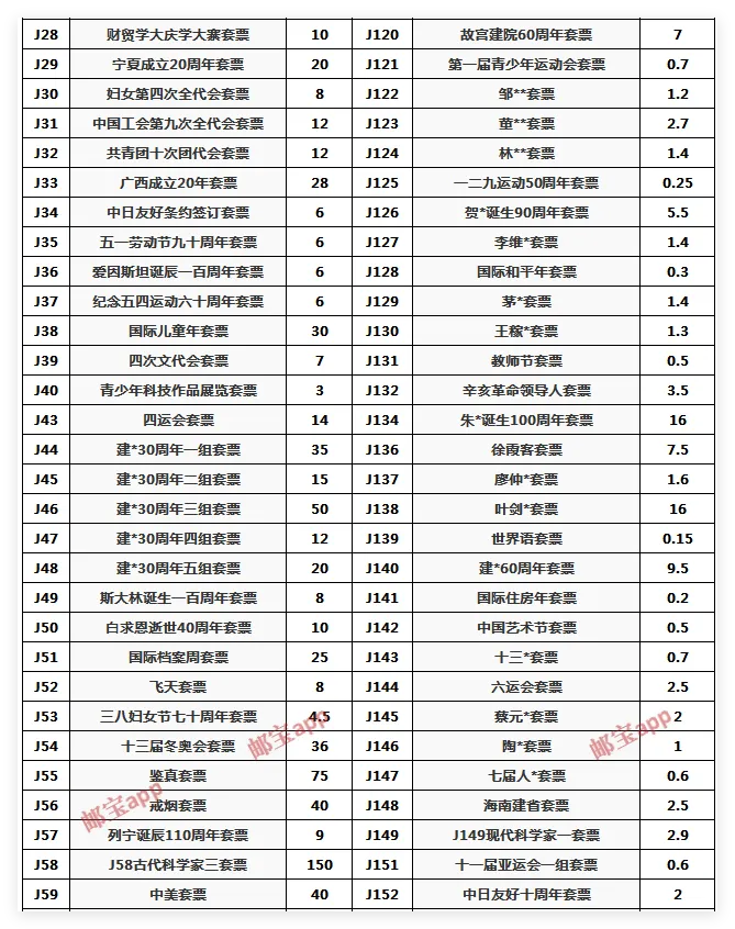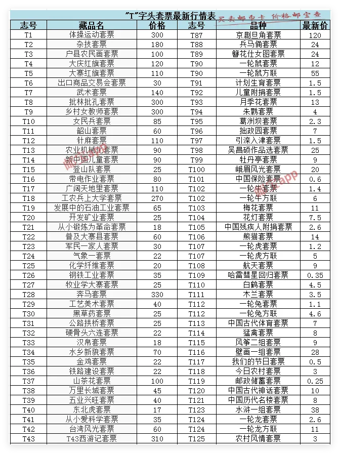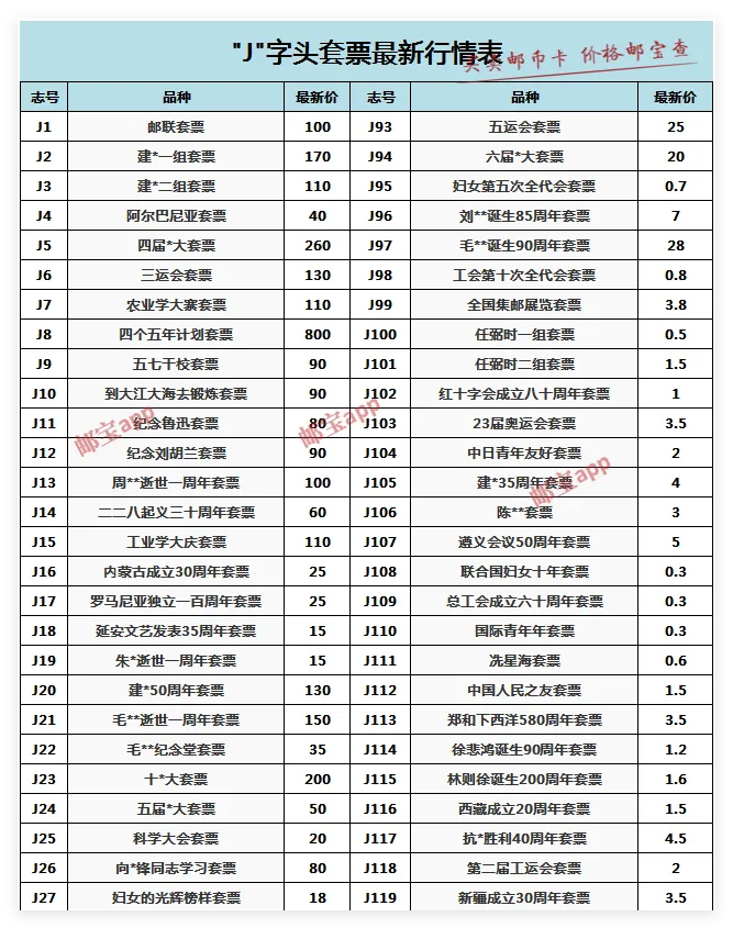 >4月30日J、T套票最新行情价