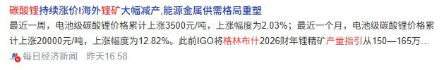 据最新现货报价,电池级碳酸锂已站稳18.39万元/吨,单日涨幅达3.73%,近一个月累计涨幅超12%,相较于去年10月的行业低谷,累计涨幅更是突破170%,行业彻底走出低谷,迎来周期性反转。从盈利逻辑来看,锂价每上涨1万元/吨,上游锂矿企业毛利可增厚30%-50%,这种价格驱动的盈利增长,并非单纯的题材炒作,而是实打实的业绩兑现。