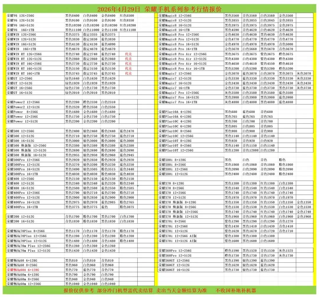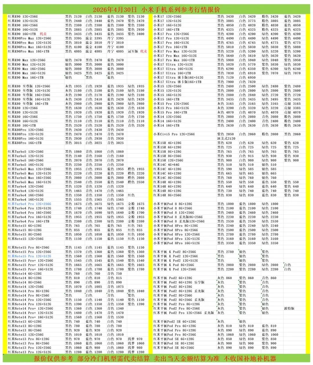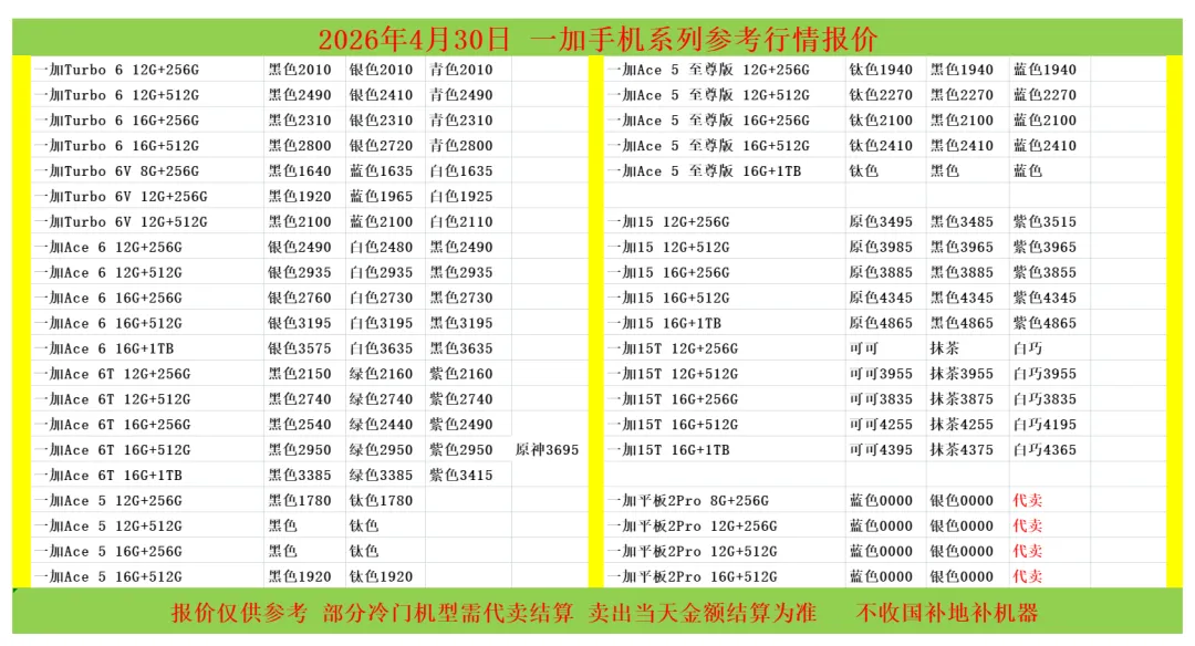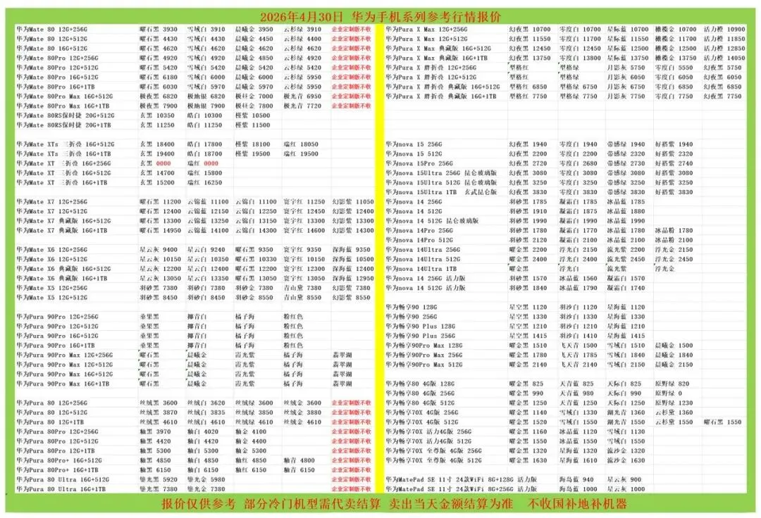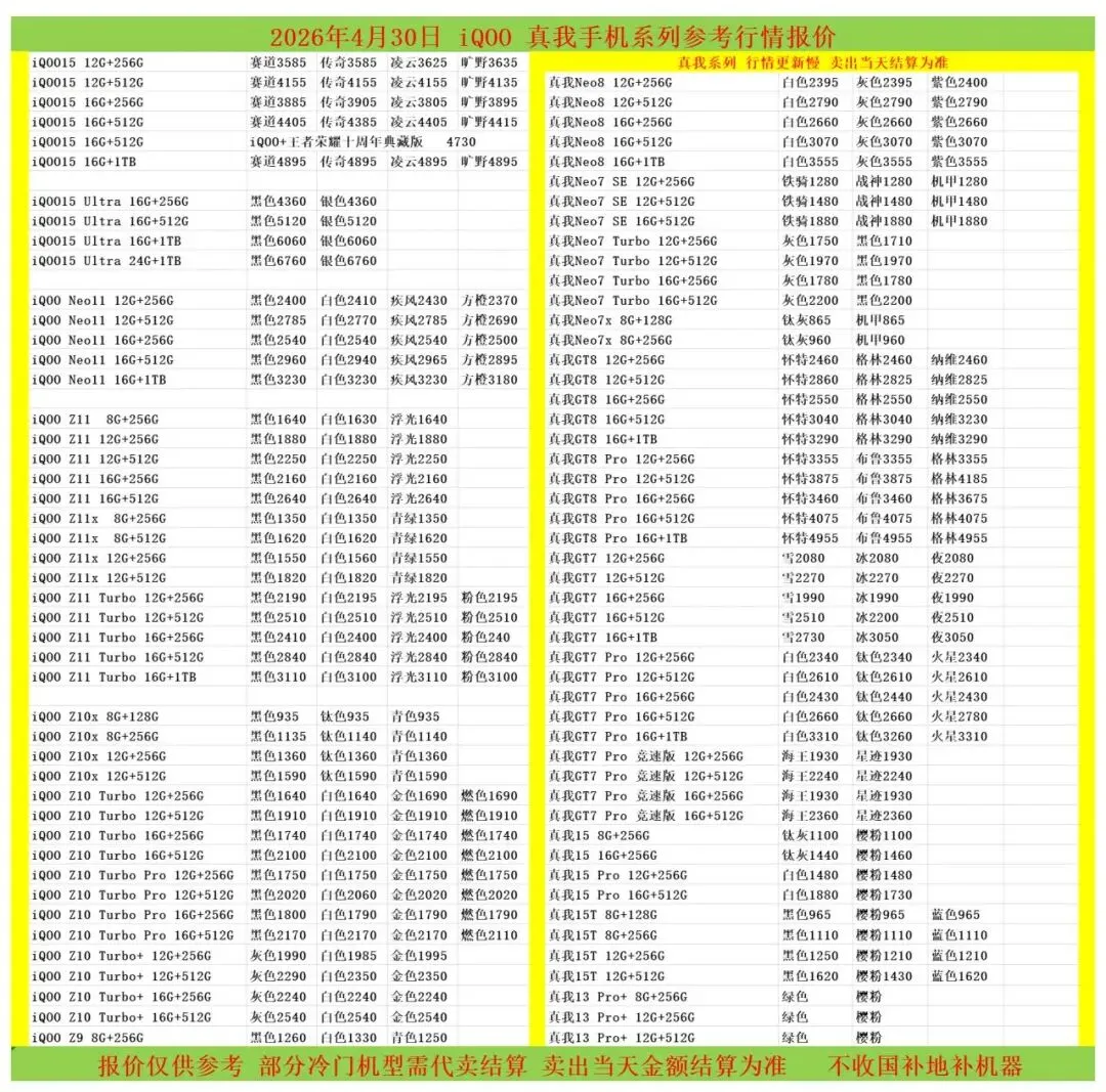 (1)二级市场为自由交易市场,价格实时波动,可能每个小时的卖价都不一样,此报价为华强北市场收货参考行情,实际结算价见公众号:鸟哥撸货数码结算价。