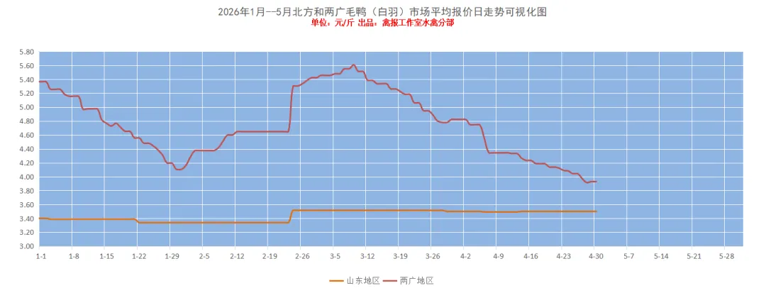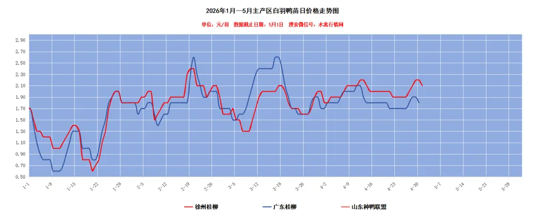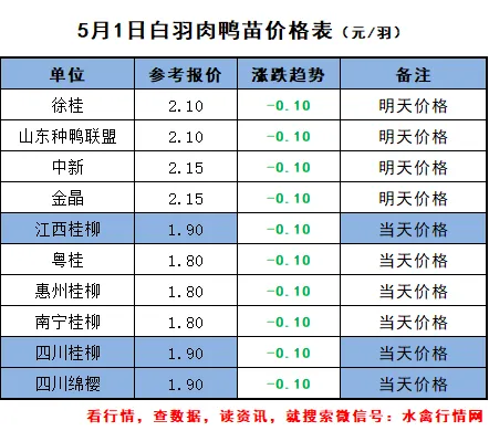 (1)北方报价:5月1日报价下跌1毛,主流孵化场报价2.10-2.15元/羽。