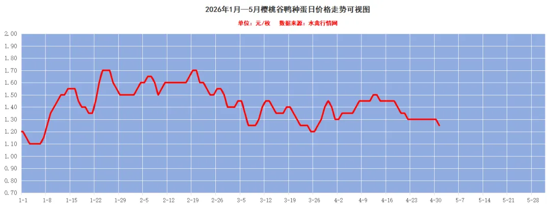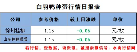 5月1日:桂柳农牧报价下跌5分,山东种鸭联盟报价下跌5分,主产区主流报价区间1.15-1.25元/枚。