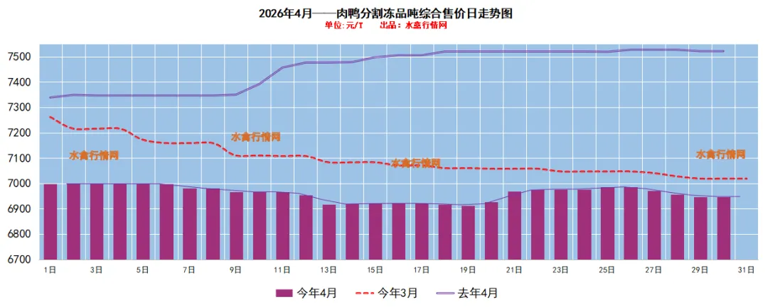 腿类报价大体稳定;胸肉类报价多点稳定;小胸肉类报价多点稳定;半片鸭报价基本稳定;翅根类报价大体稳定。