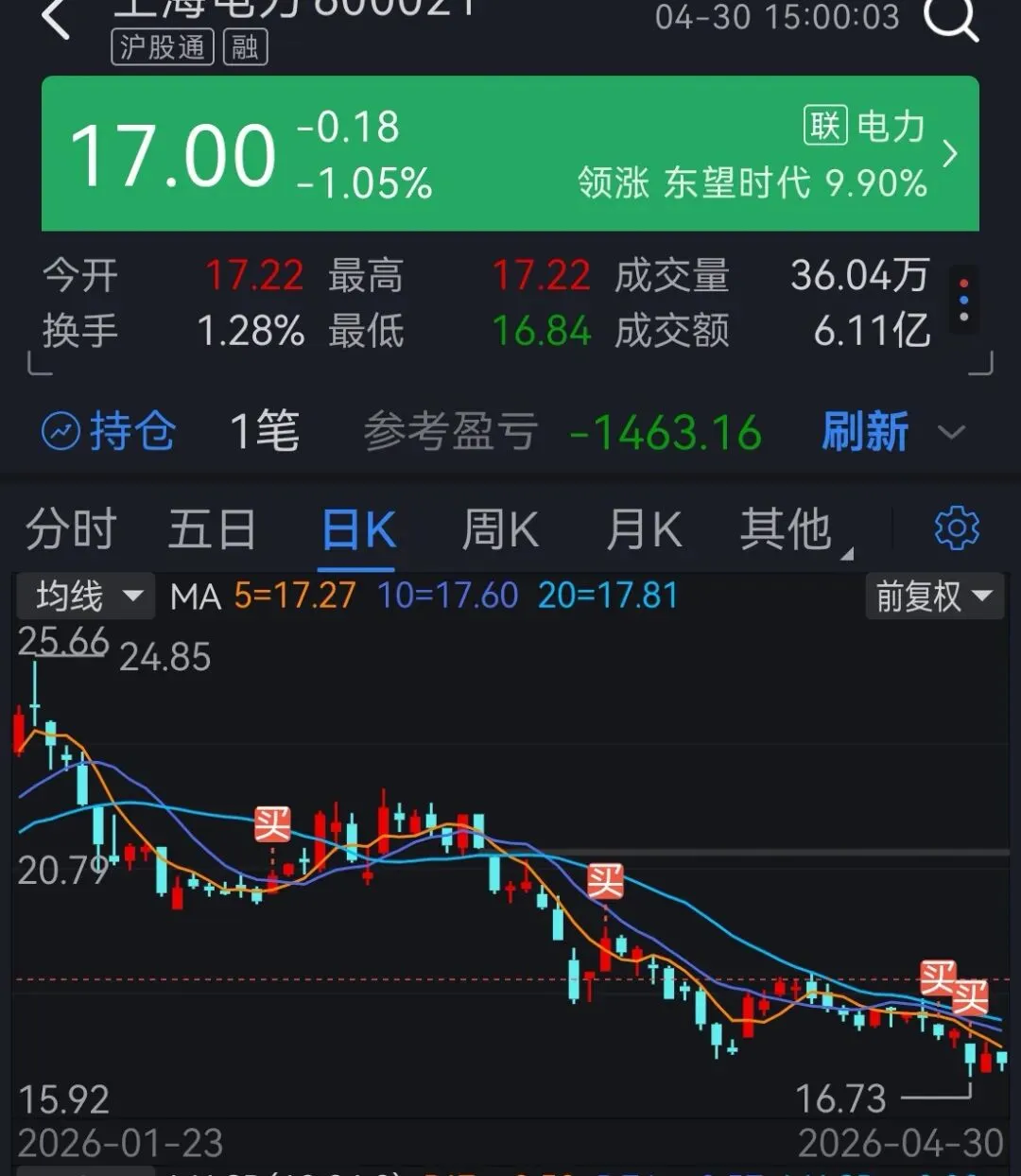 之前看到有大V形容A股的行情,每年年报的时候这段时间是A股最难做的时候,因为上市公司一般在四月底之前披露上年度的经营情况,所以这段时间消息满天飞,年报大跌都是跌预期,直接提前跌完,但是就算跌完了,行情也起不来,所以还要等五一假期回来之后再说。所以整个四月也就是每年的年报季是全年最难做的时候。比如昨天看到的消息:今天又看到的,其实正常,要是年报好看,早就提前放出来了,还怎么会扭扭捏捏到最后一天?其次是在每年的八月份中报,但是中报的影响较小,然后在中报到国庆之前,这段时间,也是比较难做。行情比较好的时候就是在国庆节之后到春节假期之前这段时间。本来对四月这段时间难做是有疑问的,事实确实真不好做:盈利亏损1:1;整体亏损状态,这月最大的收获就是通过反复做T,把JXNM的收益转为正,将原来的成本在23块多,降为17块多。想转风电来,五月份再说吧,最开始成本也是21元左右,现在做T做到了18块多,还是整体亏损状态,割肉是不可能割肉的,好消息是子弹还是足够多,今天想继续买入来,择时能力差,没选到恰当的点进入。更重要的是不要贪心,该出手卖了就卖了,就算卖飞也总比现在亏了强。✨ 回复【关键词】解锁往期精选: