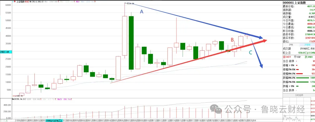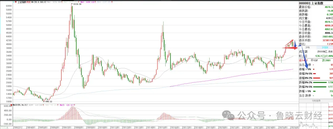 今年策略指向/鲁晓云最新观点: 去年热点全部审视或推倒重来。 新热点需要审视行业景气、产品涨价、业绩匹配。包括牛股之A起预期或者审视之后的不及预期而A落。 传统产业能够稳定,但上涨想象力须结合+科技或+文化。 化工景气、吉祥字眼、城市地标、动物辞旧迎新;中价股主流、山谷之中带响的弓箭、新高历史多数不可信(大股东、实控人套现,牛市为谁辛苦为谁忙,井中月、镜中花);好的属于传统+资源,诸如资源+科技、消费+科技、周期+科技、科技+文化;我指新生代、新一代、精神文明消费升级、绿色生态文明建设是重点。 权重股新老交替、腾笼换鸟之后,总体去奢侈品、上面空间压抑,下面蹦极之后天空压抑的状态不会根本改变,属于始终是低水平重复建设,努力却在做无效功。去茅非指数三四线个股大牛无形,继续排除一二线个股的僵化走低,但注意其类茅非茅关联度。克隆茅但非茅三四线为主。不停推倒重来。否极泰来,盛极而衰,重复不断。 指数路径如我长期以为之L--X--Y--G--Z--S。 买进机会: 35日分水岭(强弱)、阳多阴少视为上涨趋势确立。 持有和低吸:上涨途中收阴快速下跌却立即再度走高。 指数跷跷板板块的崛起,茅概念等死亡板块的回光返照,滞后板块的跷跷板,死亡股性呆滞个股崛起属于没得而炒作的权宜之计。 跳空缺口+揉搓。主升最后大涨。 出货策略: 高位放量之后,大涨放量第5天出货。 或低开收阴边打边撤,不再幻想继续上涨(连续阴线之后收阳属于刹车惯性不可信,逐渐转跌或大跌)。 高位跳空下跌,再度上涨但反向出现断指信号(跳空下跌出现揉搓,坚决抛售)。 继续秉承:非茅、去茅、一鲸落万物生:非指数化个股大牛无形。注意冷偏门逐渐转暖,或者过热之后过山车蹦极回落。 物质文明消费降级,精神文明消费升级。 鲁晓云2026年选股回顾:资源+科技之西***、华****、科技+文化或新生代新一代之高***、消费+科技之共***、绿色生态文明建设之装配建筑黑**、其他:算力+存储+液冷之行*科技、国资改革+重组预期之祥***、化工景气+锂电池之红*发展、光通信+智能穿戴之飞**、跨境电商+外向型经济之远***、商业航天之航***。铁树开花或曲径通幽(人迹罕至、***)、淡泊平怀才是人间真味,投资亦然、昔日牛郎今归来(****)等...。 质朴生活、低调轻奢、智神科技、美好生活、新生代、新一代。智慧和美好。 渣男券商是市场反面角色(绝不是什么牛市旗手),一旦上涨,绝无好事情。 涨停一大片的时候,特别是个股看起来好像都是主升浪的时候,往往就是陷阱诱惑最大需要急流勇退的时候。 主升浪个股趋势大涨(大阳线加速甚至涨停)往往最后一冲,套你没商量! 行情好时,选取进攻性股票(科技进步)、行情不好时,选防守性股票(公用事业等)。 节前避险盘出局之后,再度大盘上涨强烈,绝不是真实信号。 山谷中带响的弓箭:低位凹见底(弱转强,低风险绝对赚),高位强势凸出大阳线出货(趋炎附势看似容易实则:高风险,看似容易却高成本容易被戏弄;看似趋势明确强势,但持股成本毫无优势)。---低位困境反转比图形好看主升浪个股更实惠! 10元区间牛股层出不穷,按我指规律进行台阶上进阶竞技或者步入调整。 7、8元-10元-14元-28元-48元-60至80元-100元台阶试探上行。 反正是100-60至80元-48-28-18-14-10-7、8元,一旦回跌,则也类似反向下台阶。 不同时期腾笼换鸟:市值变化荣辱的意义体现经济结构转型的重要意义(股价高低阶梯变化代表国家让谁作为市值天花板和领头羊)。过去是颓废的物质文明,而今是金融(银行等金融强国,前几年如此,2026年至今,再度再度脱虚向实,金融再度被排斥)、科技(半导体、芯片等科技强国、但需要打假与外围不再单纯是代工)、工业文明及资源科技(稀有金属、贵重金属之中国智造含机器人、人工智能等实业强国、先进制造强国)、绿色生态文明建设(可持续发展强国)等。 右半球切割(90度倾斜、60度下滑、假反弹折回)--小幅度爬升进入右边球并各级碗口突破(降-平、升),火箭三级摆动推动及发射。 高价压制天花板、低价便宜即便炒作也易乘电梯、唯有中价鲤鱼跳龙门。 牛股A起证伪之后或成功晋级或失败自由落体。 冬播春收及各个时段季节性波段操作,到什么山唱什么歌曲。 守正出奇,剑走偏锋,吉祥字眼或黑马品相。 股市热点之持久波动机会的城市地标、名片,顺眼、顺口之吉祥字眼。 股价现实与预期落差。出现偏差就甩卖,不再幻想和留恋,看左边想右边是大忌。 大文娱:精神文明高过一切。 航天军工和旅游景点在大盘调整间歇的表现。 龙头股性都是涨停或连续涨停打出来的。 平均股价揭示重要投资方向。 跌不动,反复试盘成箱体,跳空高开成护城河。 年均线拐头上行,且利于35日均线支撑之上是多头趋势的好朋友。 而跌破此均线则转身下行,必须远离,上涨途中回跌35日均线回落之处是再度买进机会,如若再不涨就废了,最好不回跌挨近此均线为最佳。但属于余波缭绕,后面力度有折扣。 成本因素第一,不要害怕下跌尽头起涨之后的恐吓阴跌。 箱体:注意长久凹地之后横盘山谷之中带响的弓箭变凸其,产生超级黑马,重要均线组合,早期,近年均如此)。 太阳底下无新情,与人性弱点反其道而行之,能够抓住牛股或摈弃熊股之初。 股市艺术投资,经得起磨炼(压低成本尽量买进一条线极低成本,做庄技巧),把握住瓶颈(买