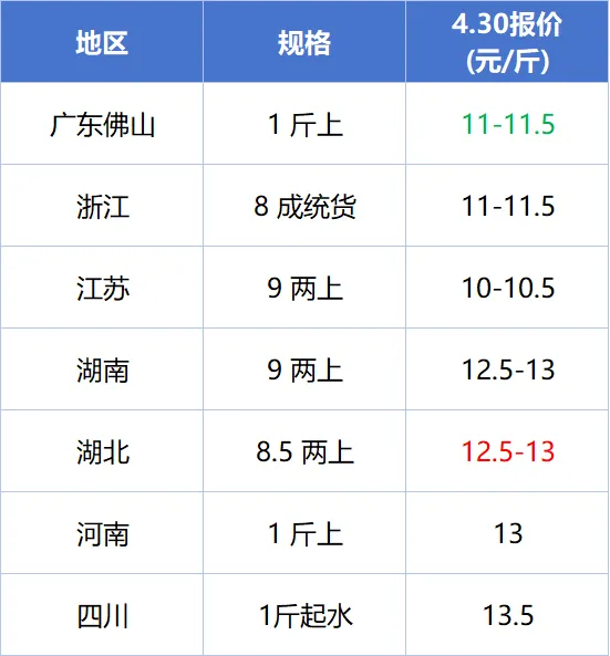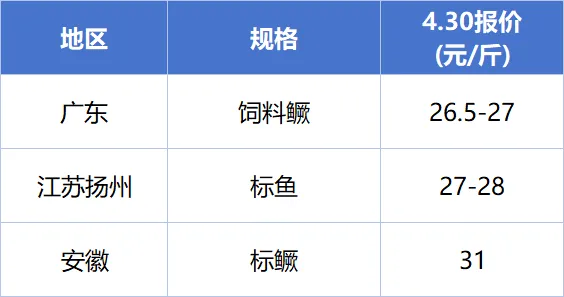 2026年4月30日多品种塘口报价|南美白对虾、罗氏沼虾、淡水澳龙、小龙虾、鳜鱼、加州鲈、黄颡鱼、生鱼、鳗鱼、大黄鱼、牛蛙等,覆盖多品类,一站式查阅。