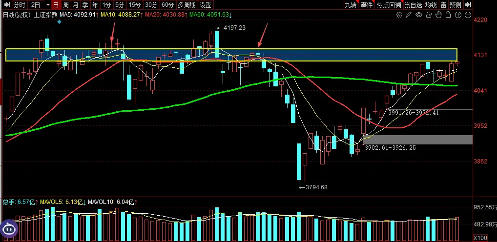 一方面关注假期期间消息面,虽然说冲突目前对于指数的影响在下降,但是肯定还是会有影响的,在目前油价逼近前期高点的情况下对于部分板块还是偏不利的。另一方面关注节后突破情况,从这两天走势来看,上证上方区间下轨4115压力还是非常明显的,能否突破决定能否开启新一轮行情。
