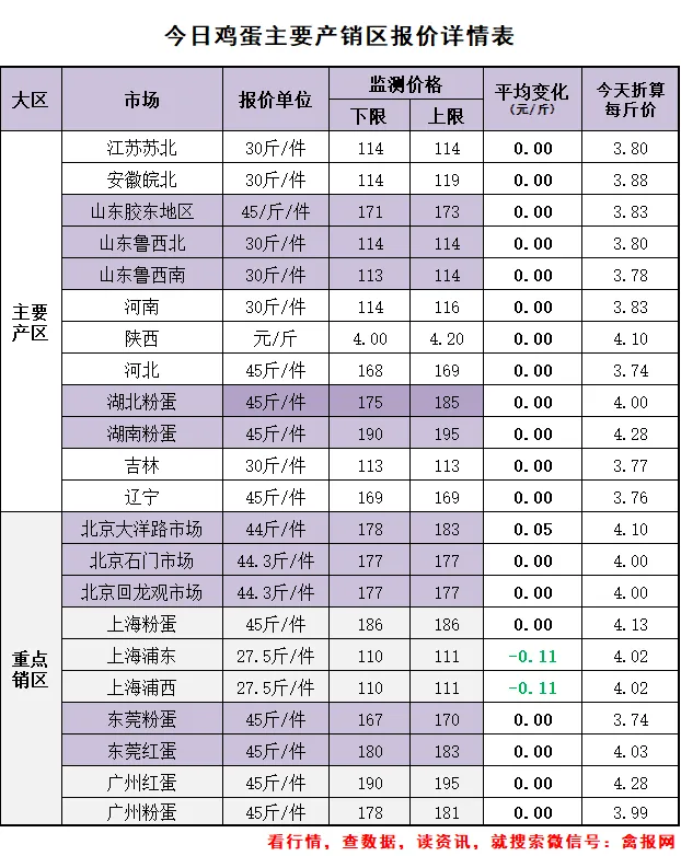 其中:主要产区综合均价3.86元/斤,较前一日下跌了0.00元/斤;主要销区综合均价4.03元/斤,较前一日报价下跌了0.02元/斤。