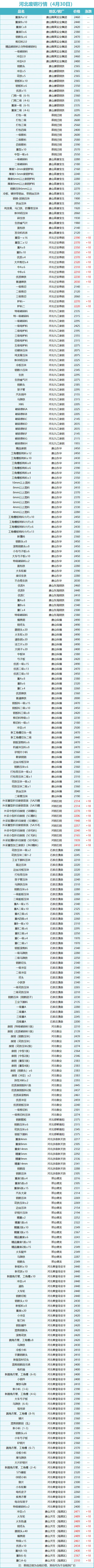 4月30日市场行情价汇总来了