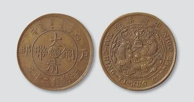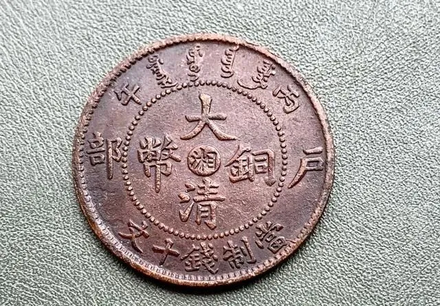 图中这东西叫大清铜币,小时候见得最多,就是那种巴掌大、黄里带点红的铜钱,一面四个大字压得正正,龙身缠在背后,龙鳞颗颗分明,外环一圈小齿轮,拿在手里沉甸甸,跟家里爷爷那点做苦工的老铜秤砣差不多压手,老头子当年用它换过生煤球、买过火柴,放裤兜里一串,走几步就咣当响,这种铜板在咱那阵子是家家都能翻出来的宝贝。