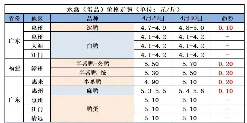 2026年5月1日全国鲜鸭蛋价格
