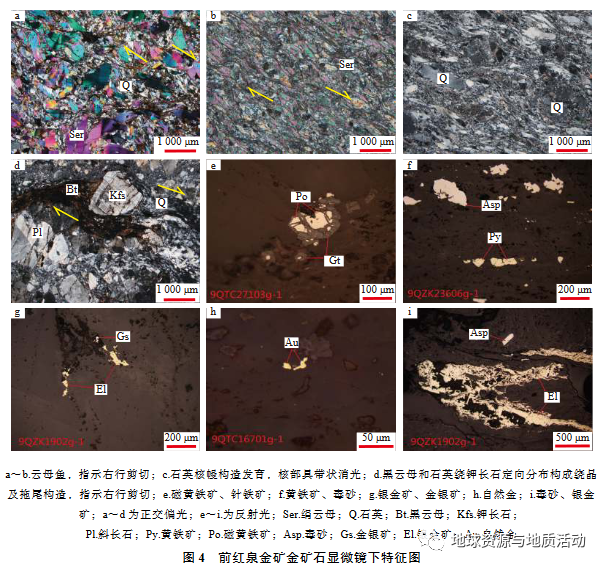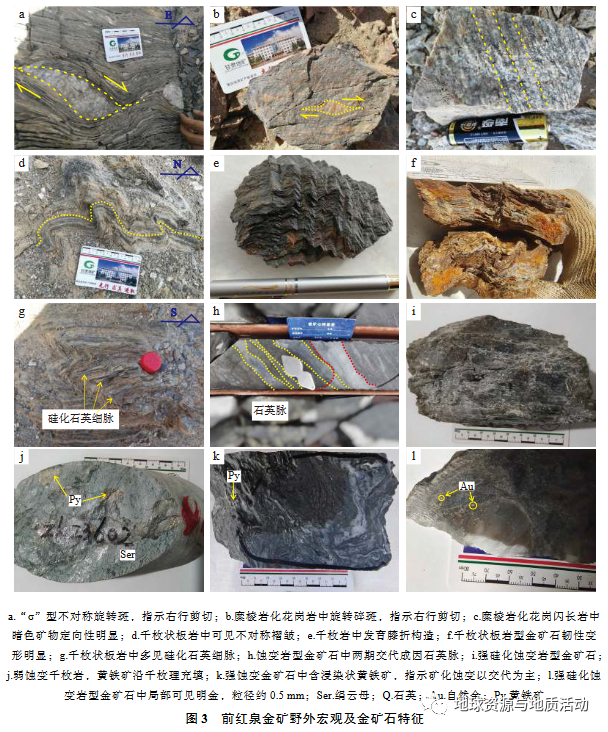 前红泉金矿是在基础地质调查工作的基础上通过大比例尺化探手段逐步发现的中型金矿床。通过野外勘查和室内综合研究发现,该金矿床产于长城纪古硐井群千糜岩、千枚岩和千枚状板岩中,严格受NWW向韧性剪切带控制,硅化、毒砂化、绢云母化、黄铁矿化是与之关系密切的矿化蚀变。区内金化探异常高值区及相关矿化蚀变可作为该矿床主要的找矿标志。