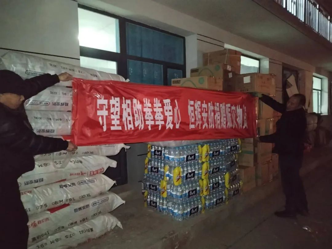 事故发生后,江苏恒辉安防股份有限公司一直密切关注地震前线,同时第一时间紧急联系了解到当地急需抢险救援物资,考虑到当地寒冷的气候以及前线抢险救援手套的紧缺,当即挑选了一批(3600双)防寒保暖的毛圈手套紧急发出,已于昨夜晚8点左右,抵达当地积石山县粮食和物资储备中心,希望以微薄之力给一线救援防护安全,帮助抢险救援工作顺利进行!