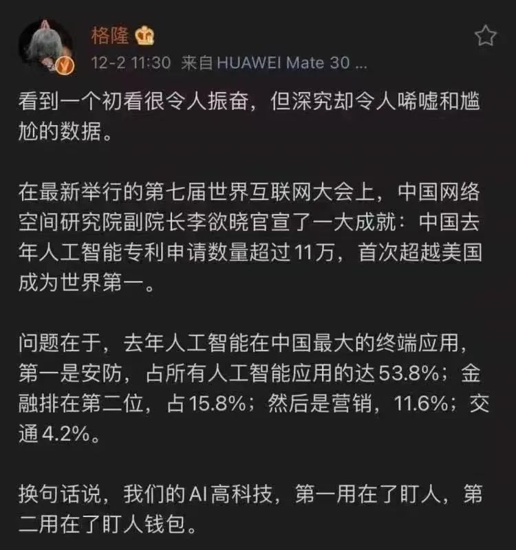前些日子各个微信群里都在传格隆汇创始人格隆的一个微博,内容如下: