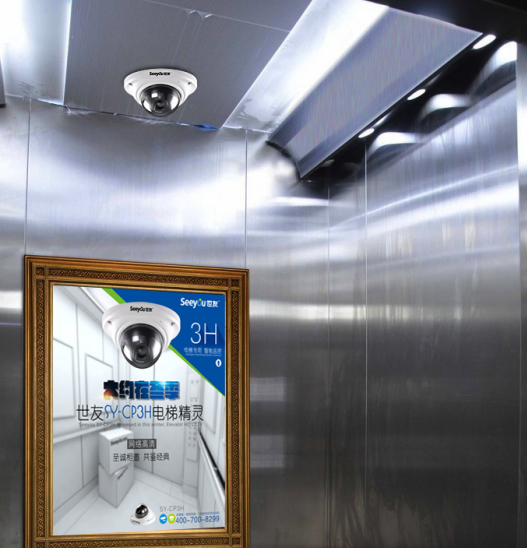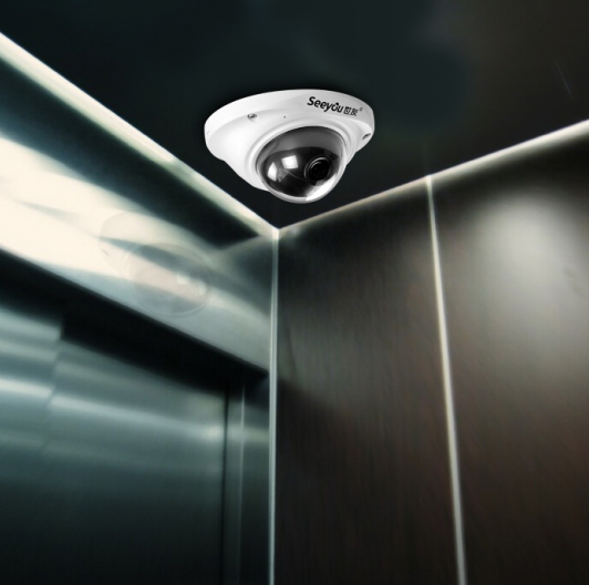 电梯环境较为狭小,建议安装视场角大(广角2.8mm)的Seeyou世友半球型电梯专用摄像机,小巧隐蔽方便安装: