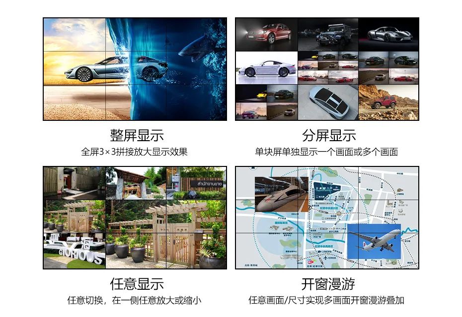 软硬件技术方面,液晶拼接屏不仅可以支持窗口多开,还可以实现画中画、图像漫游、切换等多重图显,也可随意选择显示画面大小等功能,如遇突发事件时更方便取证。