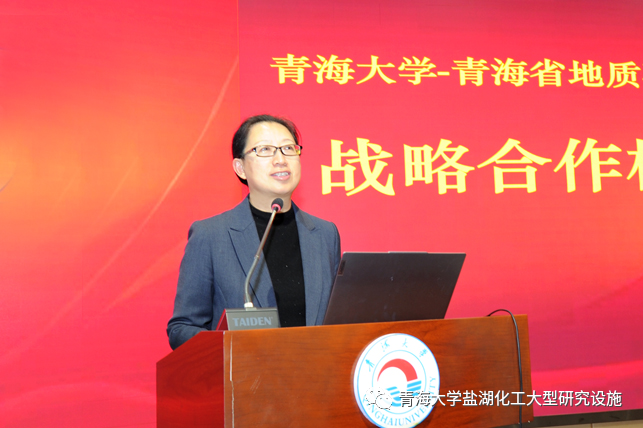 党委书记李丽荣发表热情洋溢的致辞,强调了此次合作的重要意义,期待三方能够在地质矿产勘查、科研和教育等领域取得更多成果,希望以此次战略合作为契机,带动青海大学多学科协同发展,带动学校整体水平提升,紧扣生态文明建设发展需求,加快产出标志性成果。
