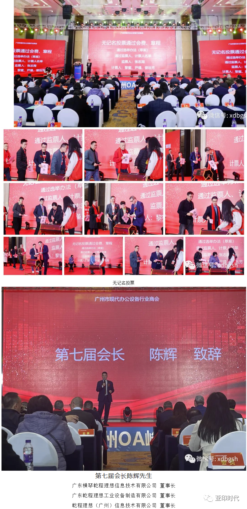 2023年12月20日,广州市现代办公设备行业商会在广州日航酒店一楼宴会厅举行以“勇于挑战,发展创新”为主题的的第七届第一次会员大会暨广州OA峰会,嘉宾程军(广州市工商联会员工作部三级调研员)、黄文兴(广州市工商联会员工作部三级调研员、名誉会长: 谭树锐先生,段叙女士,罗爽先生,中国现代办公设备行业秘书长 张文锋、广东省办公设备协会会长 胡峰、广州市耗材协会会长 谢朝清、柯尼卡美能达广州分公司总经理 李刚、神州信息教育行业 文煜城、深圳市教育信息化协会 秘书长 李富会、艾欧史密斯(中国)环境电器有限公司 李言宝、珠海格之格 付亮总经理、珠海进出口商会复印机技术及耗材分会会长 王肖平、深圳市办公商会会长 张向东、清远市印刷行业协会会长 汤振和还有很多的厂家来宾和嘉宾及所有的副会长单位,理事单位,会员单位。