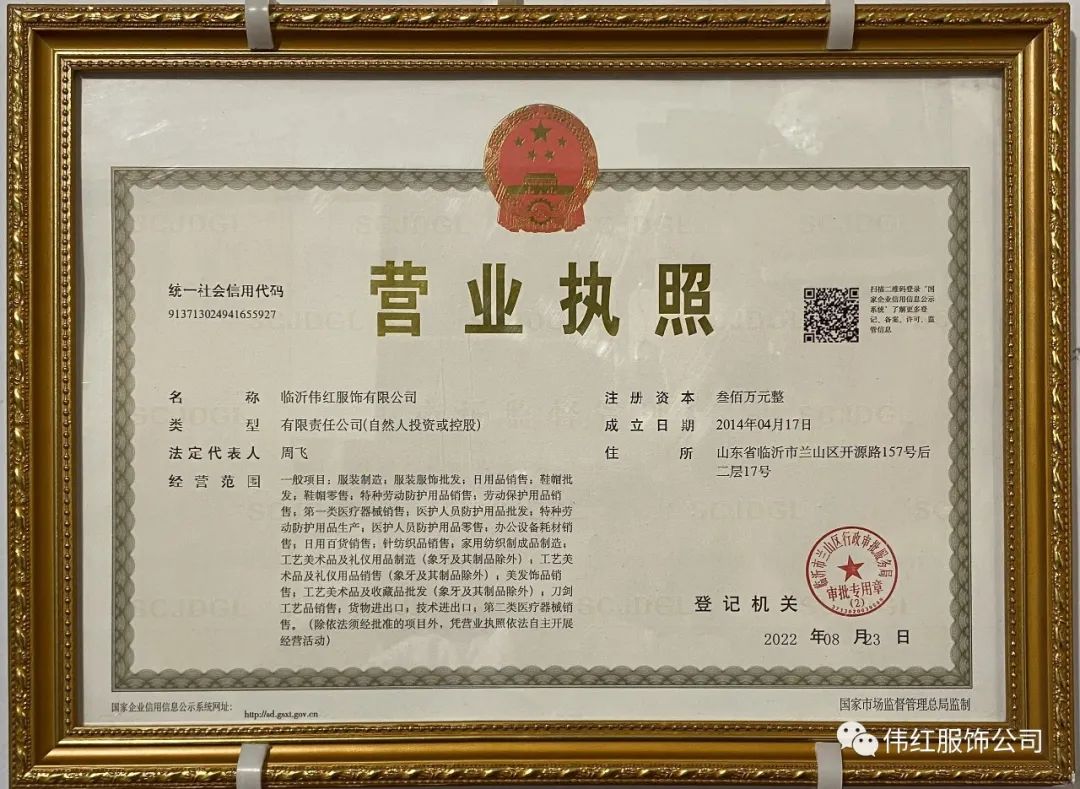 1.临沂伟红服饰有限公司