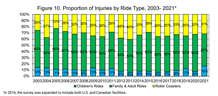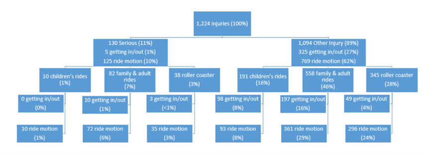 儿童游乐设施伤害:发生在设备运行过程中、与发生在进入/离开游乐设备时的概率,几乎平分秋色。