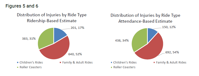 事故最常发生在家庭和成人游乐设施上,其次是过山车和儿童游乐设施(图5和6)。