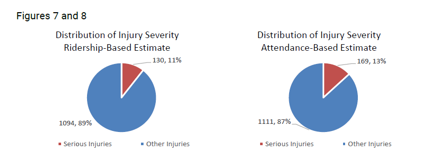 基于骑乘次数的方法统计,重伤率是11%;而基于游客量估算的重伤率是13%(图7和8)。