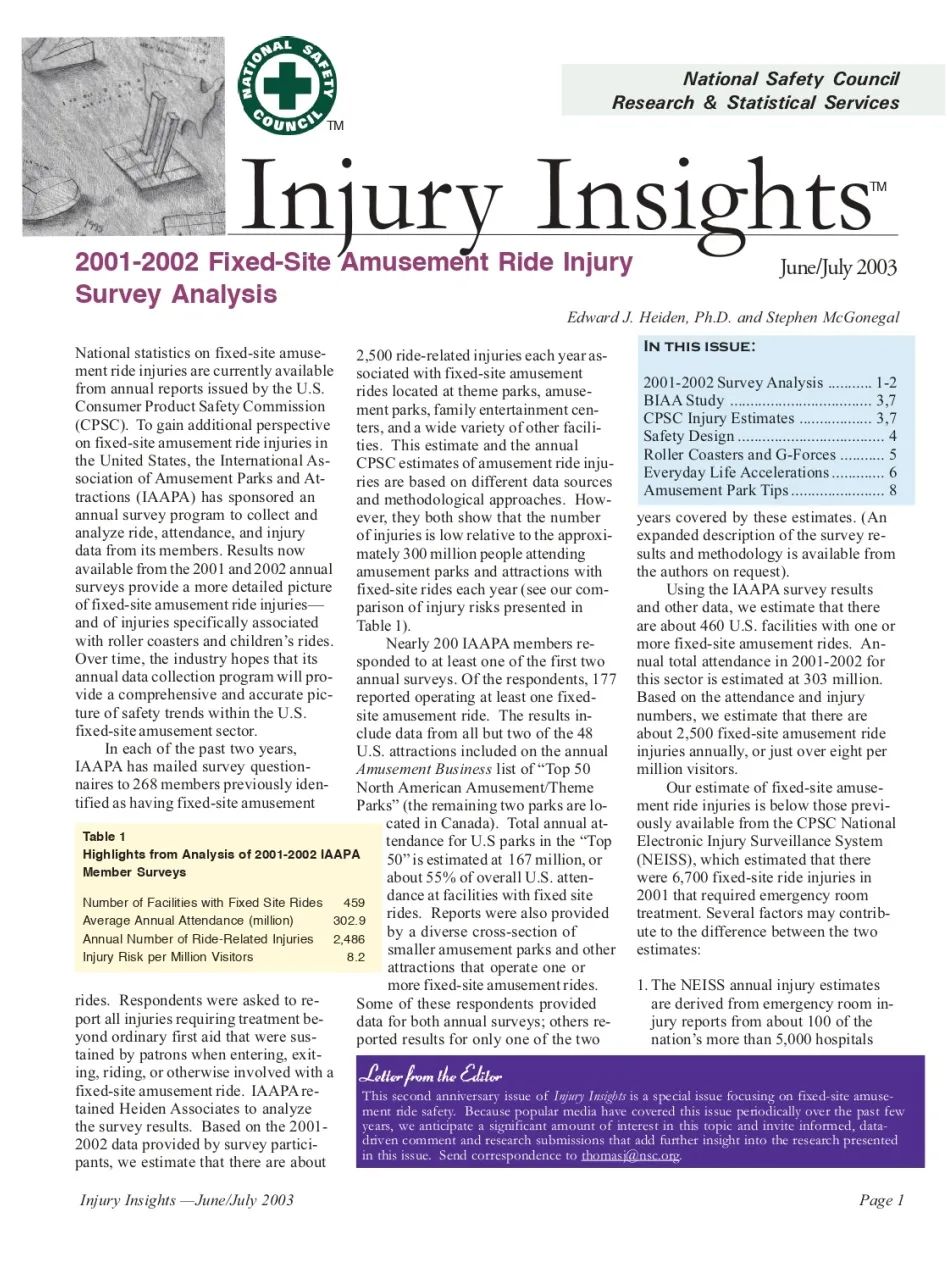 IAAPA多年来与美国国家安全委员会(NSC)合作,编撰IAAPA北美会员的游乐设备事故报告。此项调查有助于向游乐园及景点行业公布最准确的安全记录。