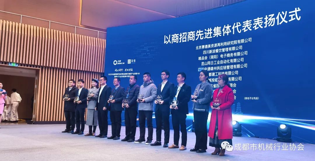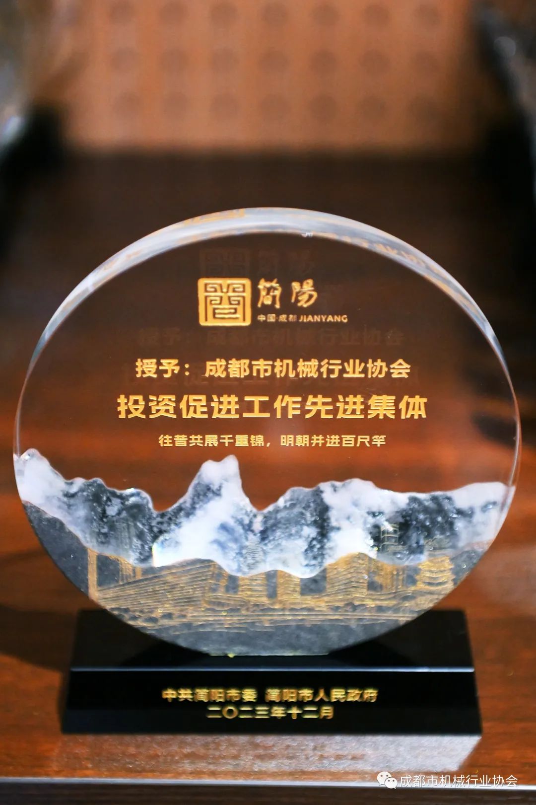 活动上,表扬了简阳市以商招商先进集体、先进个人,成都市机械行业协会荣获中共简阳市委、简阳市人民政府授予“投资促进工作先进集体”称号。