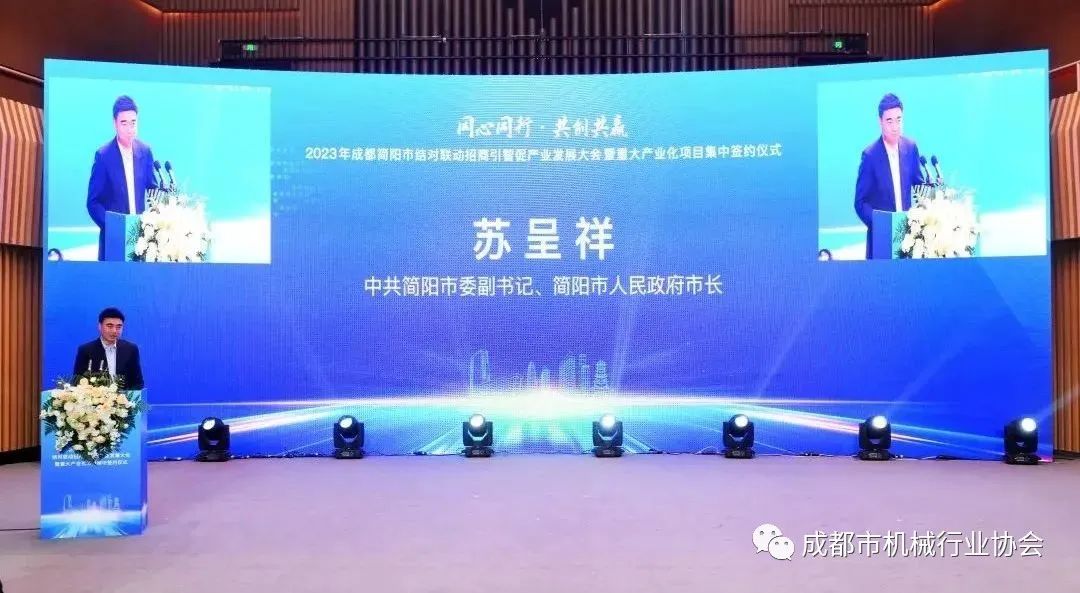 12月28日,2023年成都简阳市结对联动招商引智促产业发展大会暨重大产业化项目集中签约仪式在简阳市文化体育中心(东来印象)举行。市委副书记、市长苏呈祥出席并致辞。