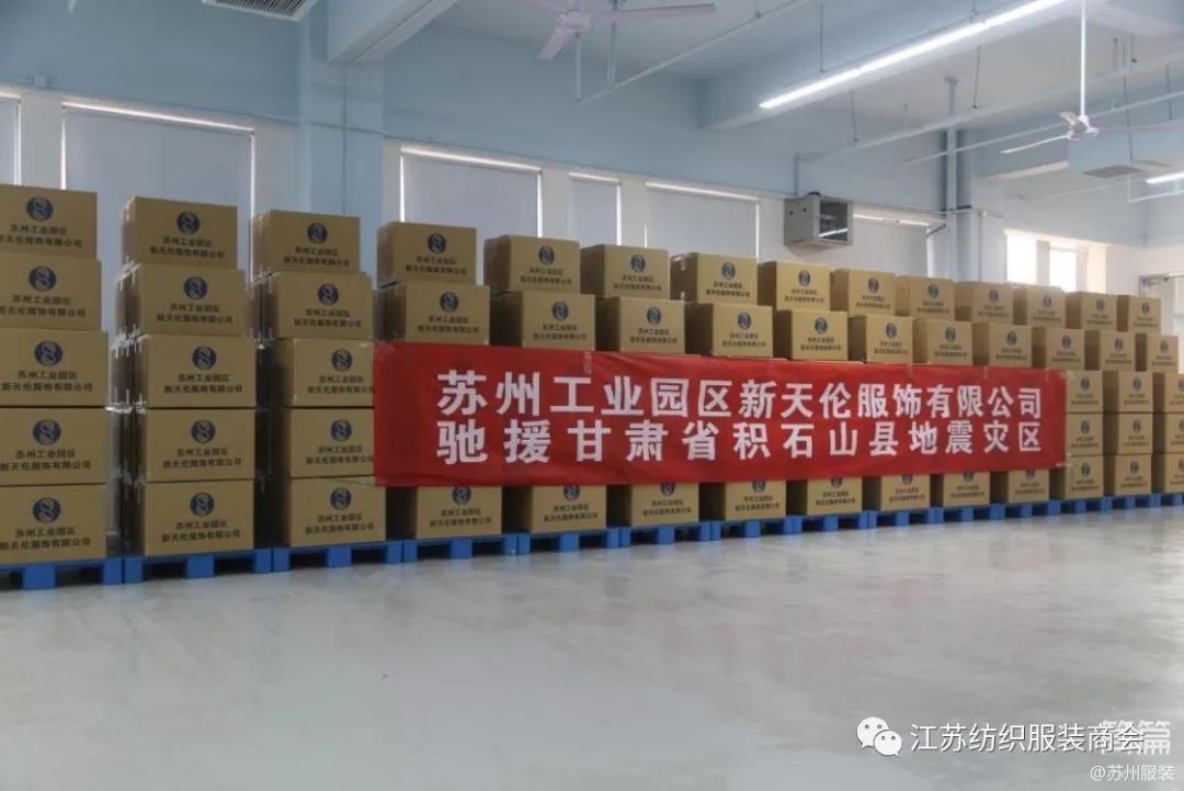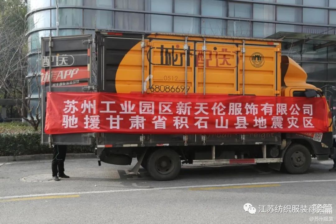 12月18日,甘肃省临夏州积石山县发生6.2级地震,造成重大人员伤亡和财产损失。为贯彻落实党中央、国务院和省委、省政府有关抗震救灾工作的决策部署,积极履行社会责任,苏州新天伦服饰有限公司紧急安排车间工人加班生产出8000件毛衣(价值80万元)驰援甘肃积石山地震灾区,用于帮助灾区人民渡过难关、重建家园。