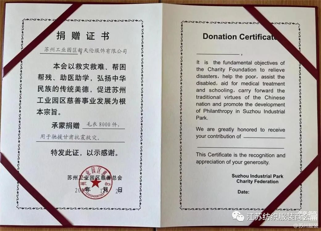 企业风采 |苏州新天伦服饰捐赠80万元御寒物资驰援灾区