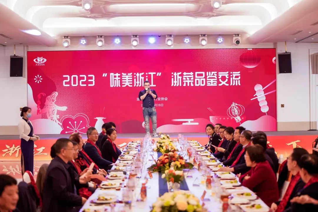 第十届省人大常委会副主任叶荣宝,第十届省政协副主席盛昌黎,省政府特约研究员、省政府办公厅一级巡视员黄信,省商务厅党组成员、总经济师朱军,省机关事务管理局党组成员、副局长华来成,省民政厅社会组织管理局局长李云,省商务厅行业党委副书记、法规处二级调研员单军,省市场监督局餐饮处副处长章江炎,省商务厅商贸运行处四级调研员佟大行,全国政协委员、浙江省政协常委、中国文化艺术发展促进会宋画艺术研究院院长何水法,《风味人间》总顾问、黑珍珠榜单理事陈立,省社科院研究员徐吉军应邀出席了会议和2023“味美浙江”美食品鉴交流晚会。省餐饮行业协会会长沈坚、资深会长章凤仙、执行会长李林生,绍兴市餐饮业和烹饪协会会长宋金才,嘉兴市餐饮饭店行业协会会长黄春燕,以及协会五届理事会常务副会长、副会长、常务理事、理事和会员单位代表,浙菜宗师叶杭胜、徐步荣、戴永明、章乃华和11地市餐饮行业商协会的负责人260余人参加会议。本次会议由省餐饮行业协会秘书长钱锡宏主持。