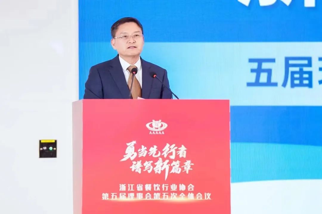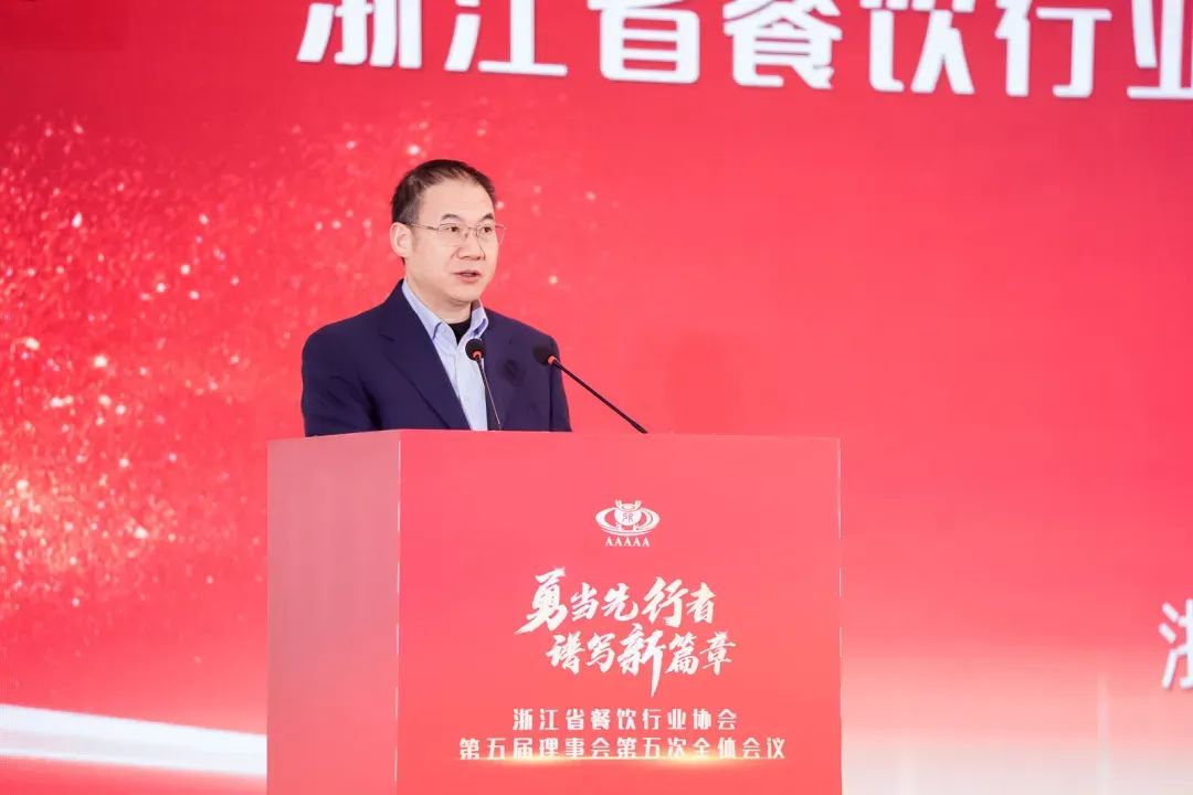 会上,省商务厅党组成员、总经济师朱军发表致辞,他高度评价了省餐饮行业协会成立35年来,为浙江餐行业健康发展所付出的努力和取得的成绩,特别是今年在助力杭州第 19 届亚运会餐饮服务保障、促进餐饮消费中所做的一系列工作。同时,他对协会协会下一步工作提出三点希望:一是要固本培源,全力推进行业发展;二是要积极作为,主动承担政府各项任务;三是要加强指导,努力做好餐饮安全的细致管理。他指出,餐饮业是扩消费稳增长、惠民生的重要产业,希望全省各餐饮行业协会和餐饮企业共同努力作为,继续为浙江餐饮业高质量发展贡献新的力量。