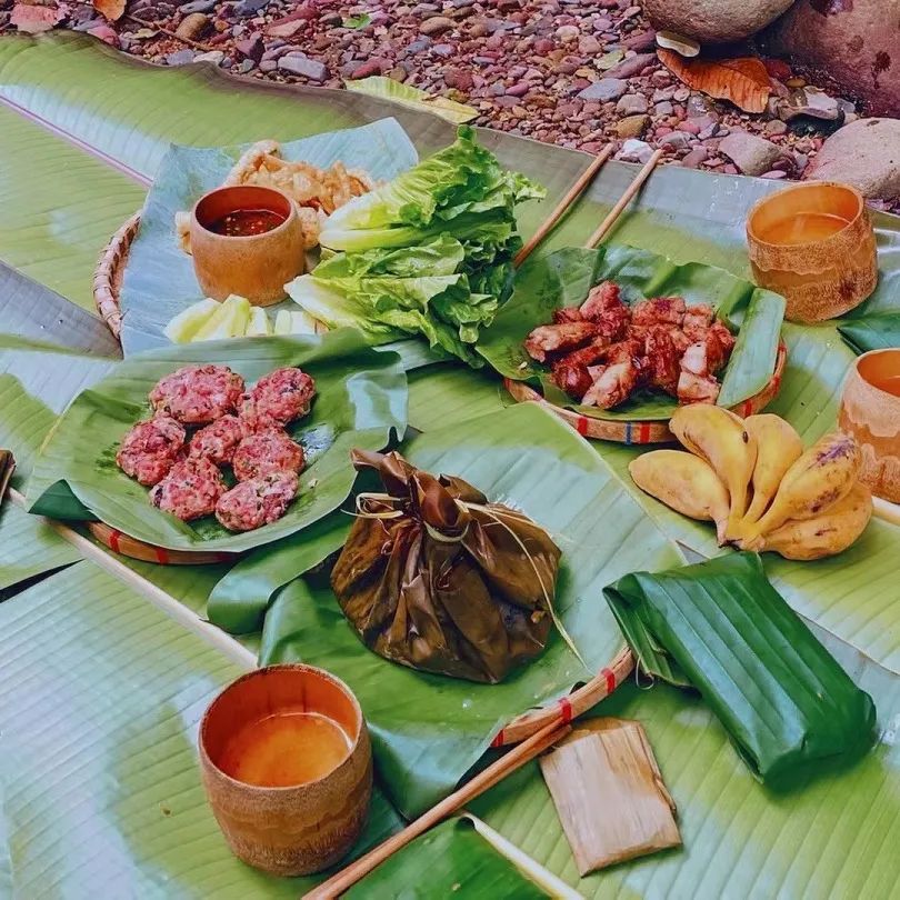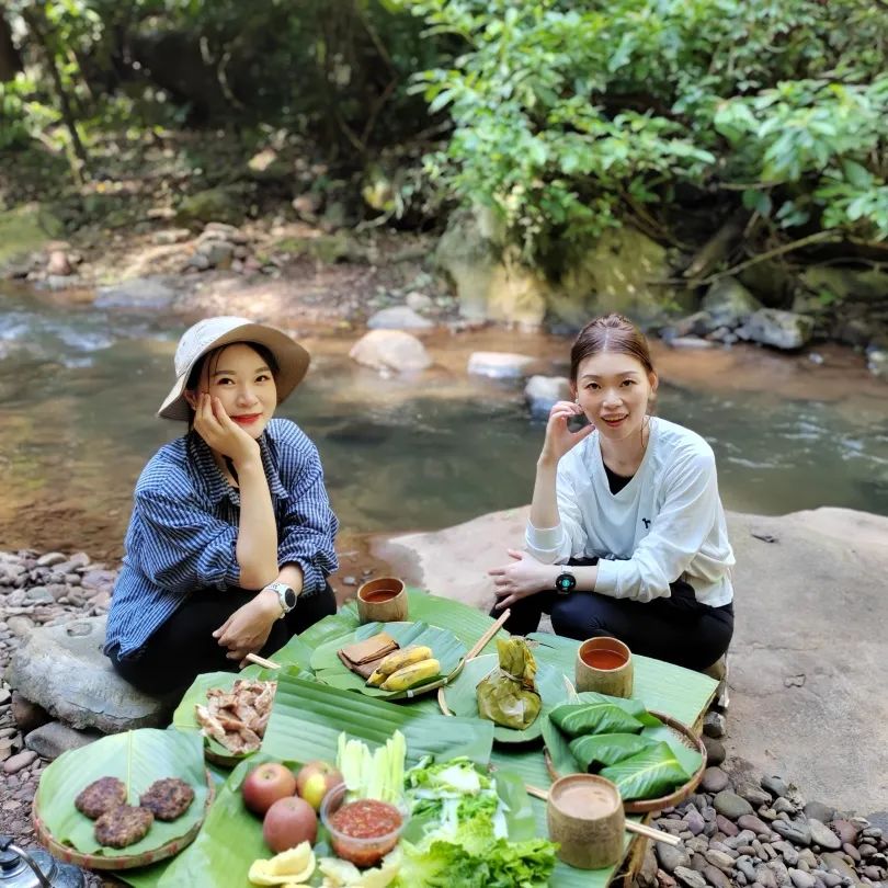 穿越结束之后大家可以在原始雨林溪谷旁体验一场傣族传统原生态雨林午餐,生态烤猪肉,烤肉饼,雨林野菜,仙境水果等等美食盛宴。