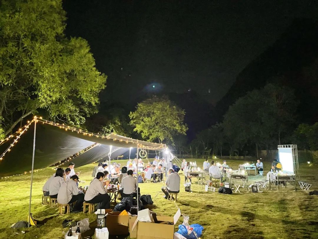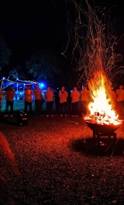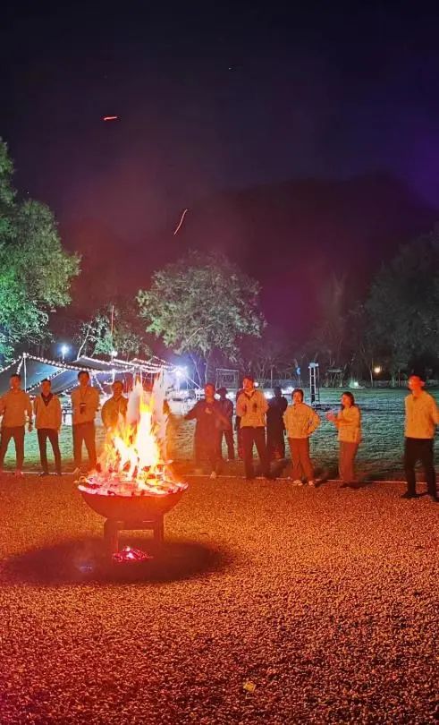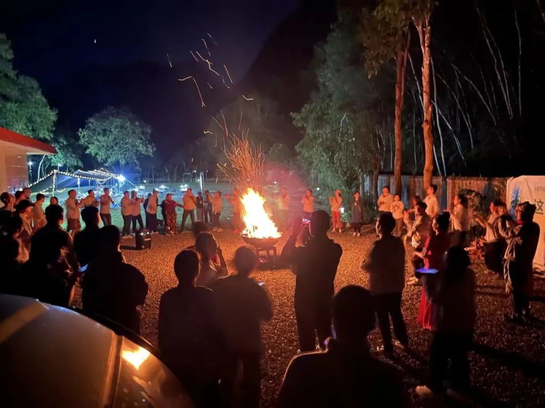 幕降临,傣族特色歌舞篝火晚会拉开了序幕,海乐福五金团队的成员们围坐在篝火旁,大家在欢笑声中感受着傣族文化的独特魅力。