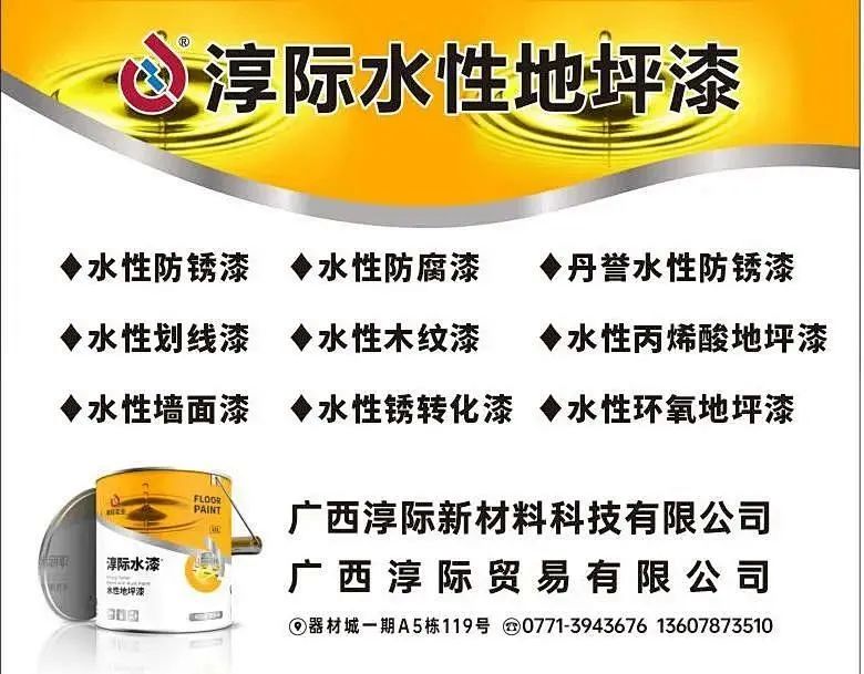 公司主营:广西淳际贸易有限责任公司是一家集研发、生产、销售、工程施工、服务于一体的现代化工、五金机电企业。自成立以来,公司凭借优越的地理位置,领先的产业信息,雄厚的技术力量,优质的服务,不断的开拓创新,成为一家多元产业经营企业。公司产品主要有水性内外墙乳胶漆系列,水性、油性工业防腐漆系列,水性、油性地坪漆系列,水性、油性氟碳漆系列,水性、油性防火涂料等,与中天建设集团、中建三局,中建八局等企业长期建立了良好的合作关系。