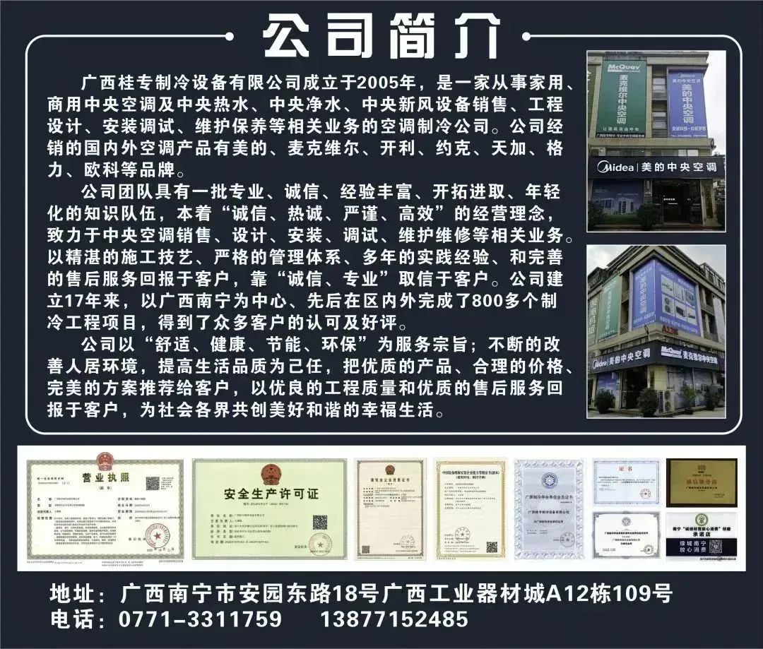 公司主营:注于家用、商用中央空调及中央热水、中央净水、中央新风、全屋智慧家居设备销售、工程设计、安装调试、维护、保养等。代理经营的产品有:美的、麦克维尔、格力、欧科、大金。