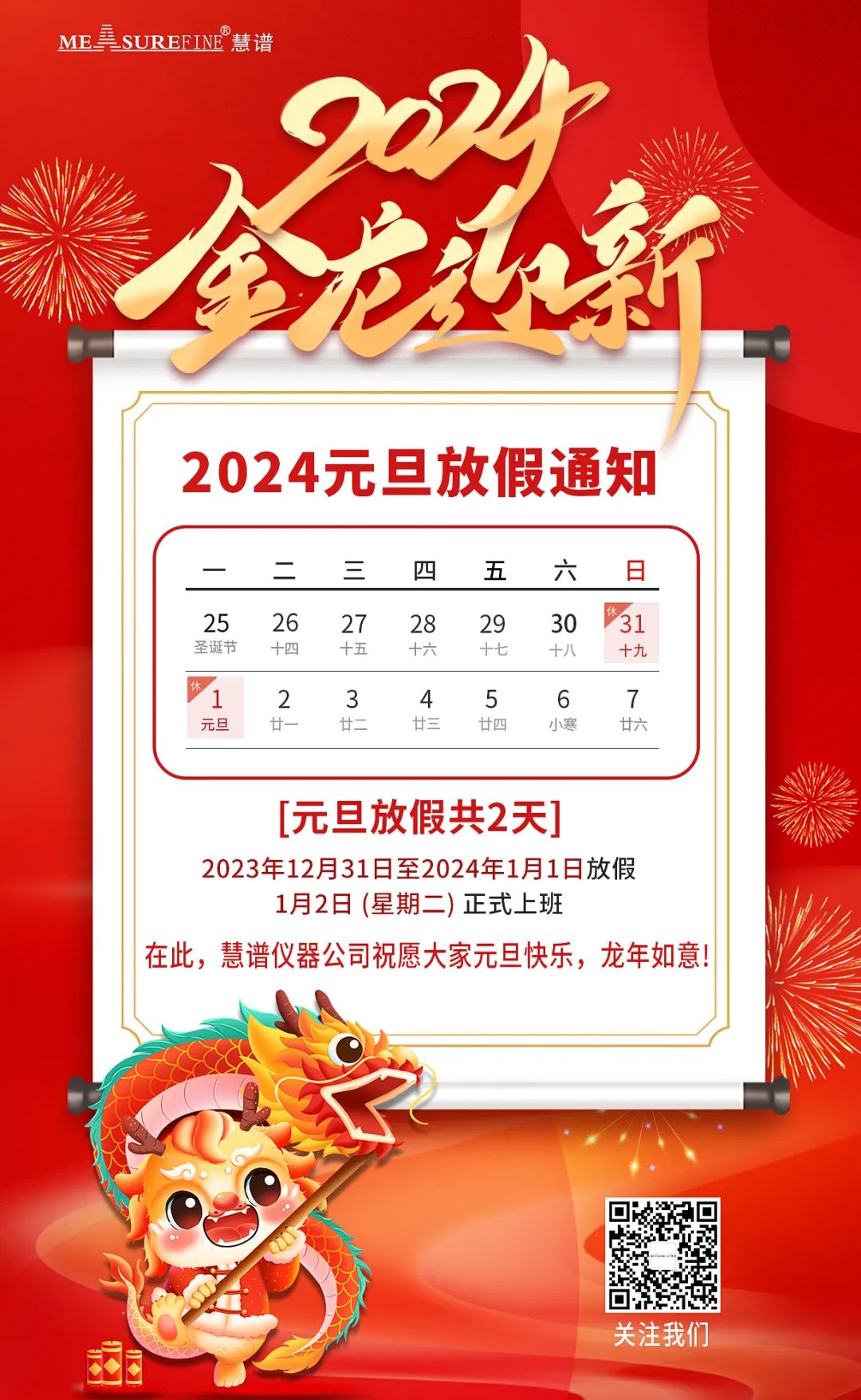慧谱仪器祝大家元旦快乐!龙年如意!
