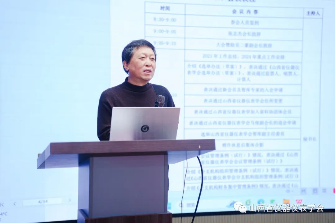 2023年12月28日,山西省仪器仪表学会一届四次理事会会议在忻州召开,学会理事长张志杰,副理事长田慕琴、闫晋平、吴二豪,监事、理事及特邀嘉宾等共26人出席了会议。会议首先由学会理事长张志杰致辞:欢迎各位理事、监事及特邀嘉宾出席此次理事会会议,感谢大家对学会工作的一贯支持,希望大家多提宝贵建议,齐心协力办好仪器仪表学会。