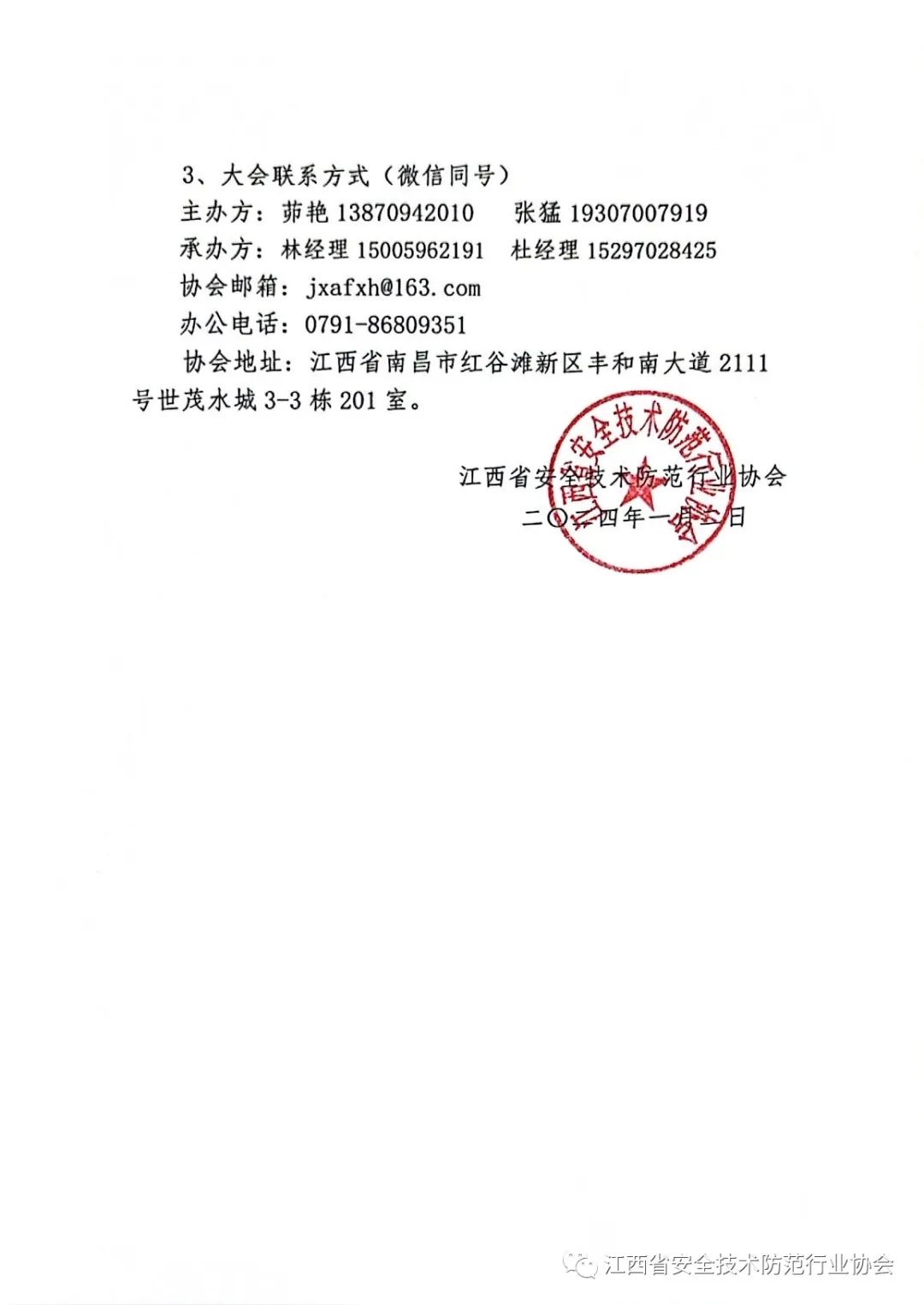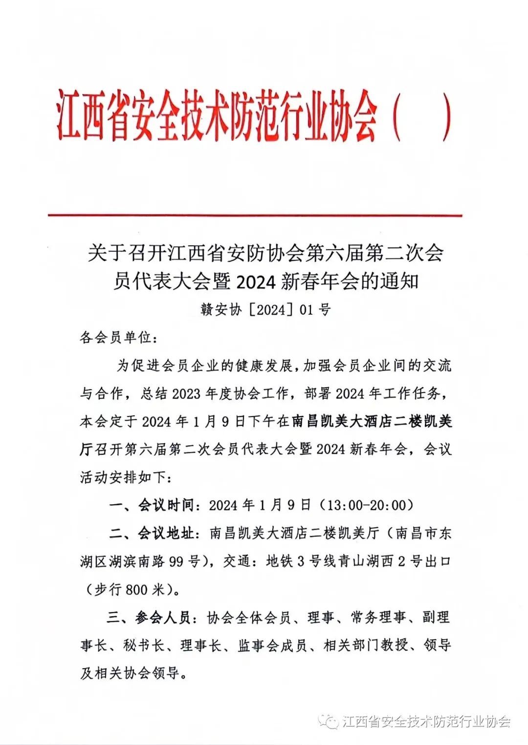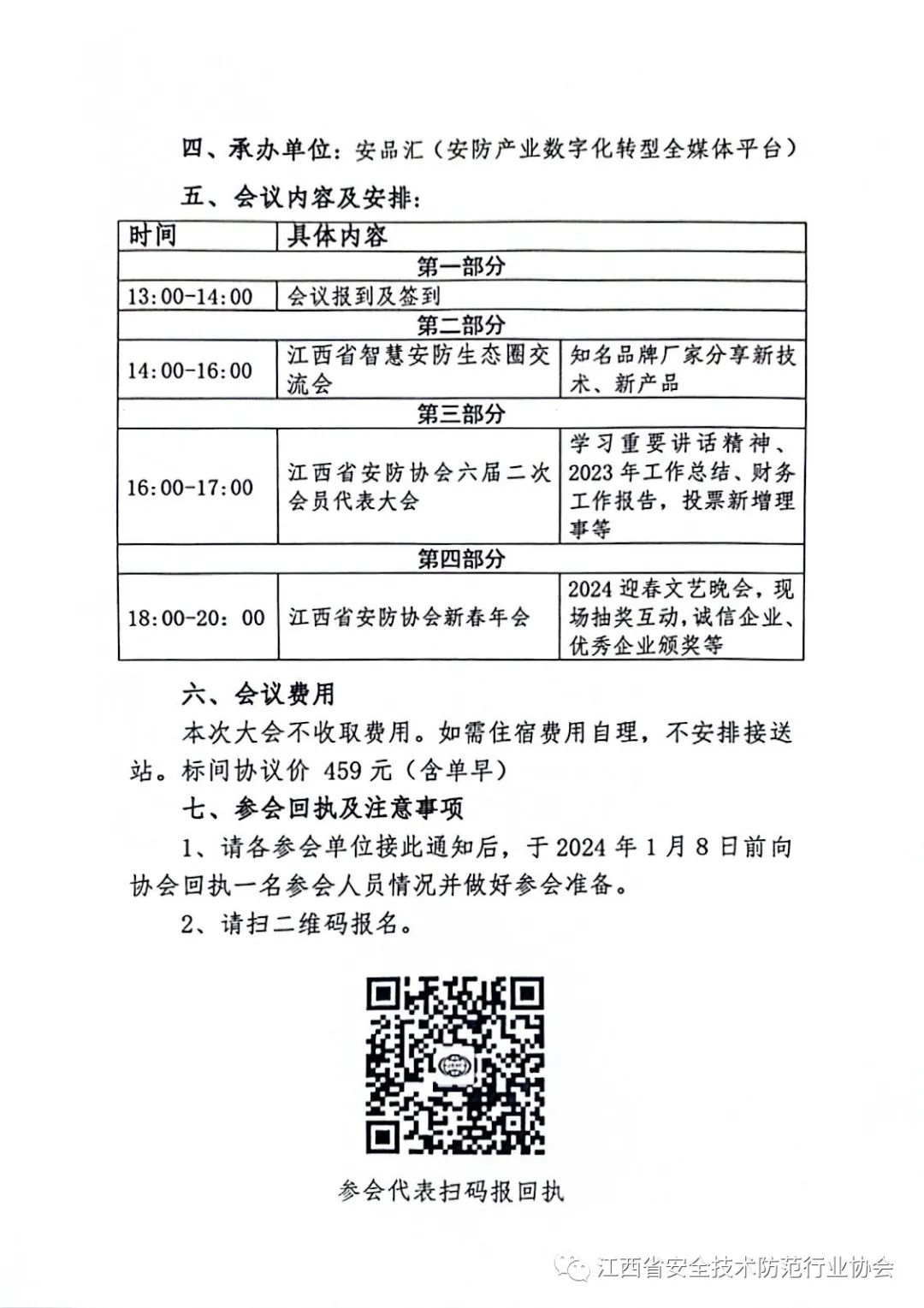 16:00-17:00 | 江西省安防协会六届二次会员代表大会 | 学习重要讲话精神、2023年工作总结、财务工作报告,投票新增理事等 |