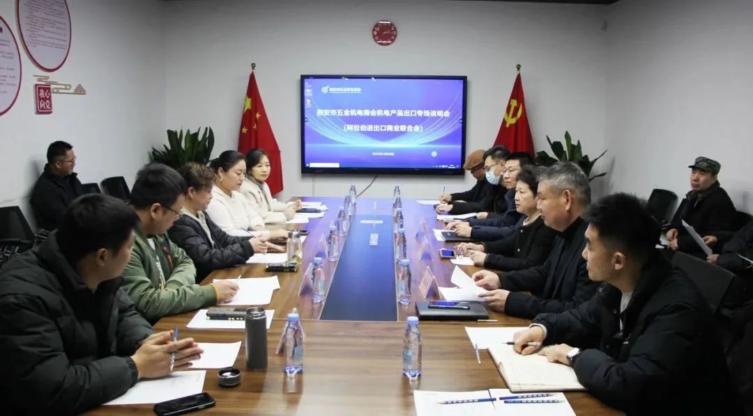 2023年12月28日下午,由西安市五金机电商会主办的“五金机电产品出口专场说明会”,在会长单位旗下的华为云(莲湖)联合发展中心举行。阿拉伯进出口商业联合会执行会长尤楷嘉、执行秘书长李迎琳、副会长舒琦、张俊伟,西安市国际商会薛永利受邀出席。西安市五金机电商会会长马莉、常务副会长宋建旻、秘书长彭远志以及20多名会员单位负责人参加本次说明会。
