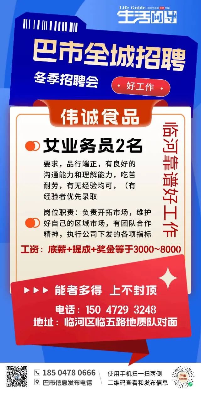 要求:男女不限,年龄20-50岁,初中以上学历,工作地点:杭后 待遇:底薪+绩效+奖金