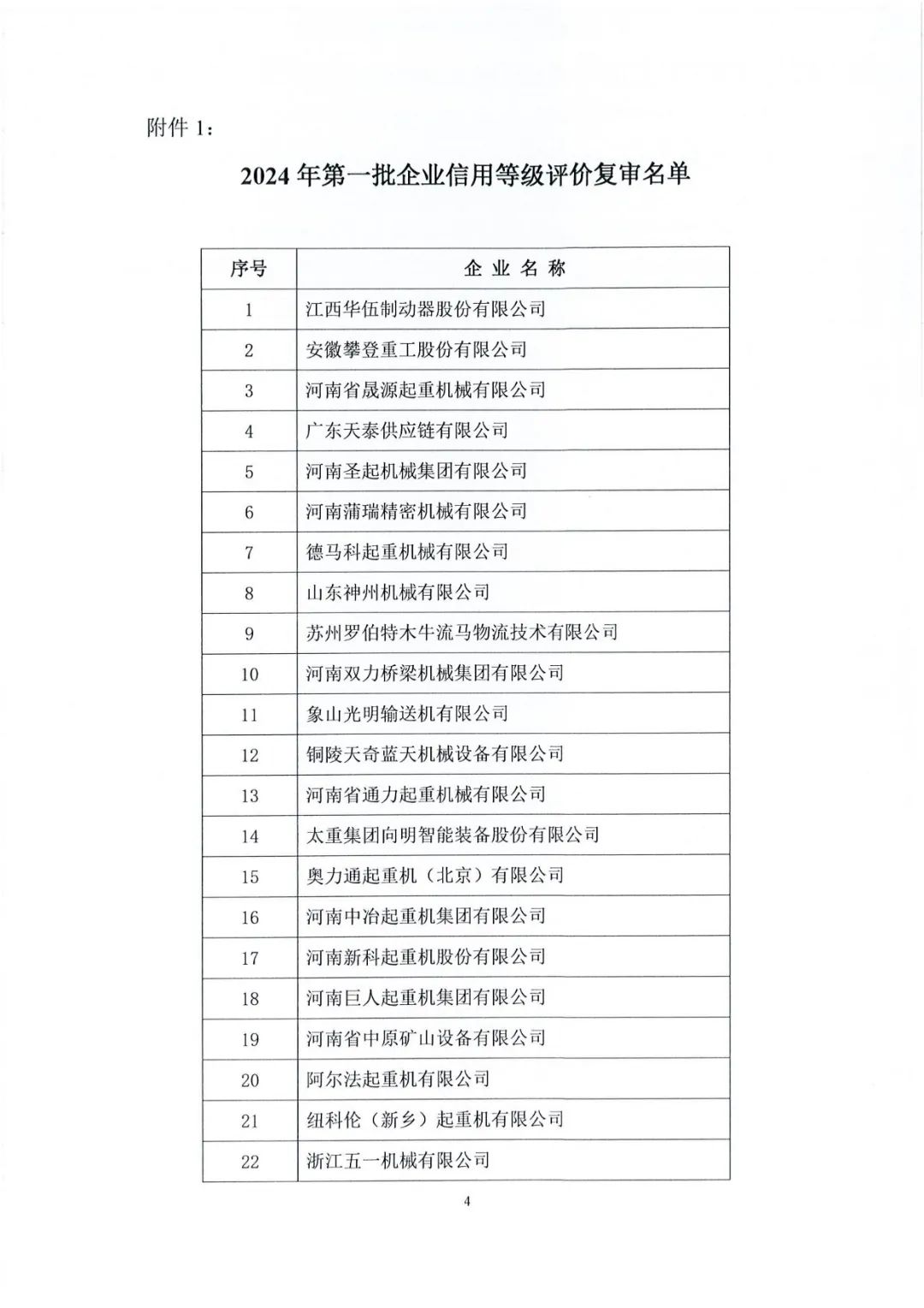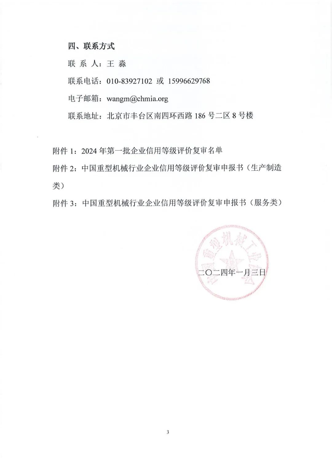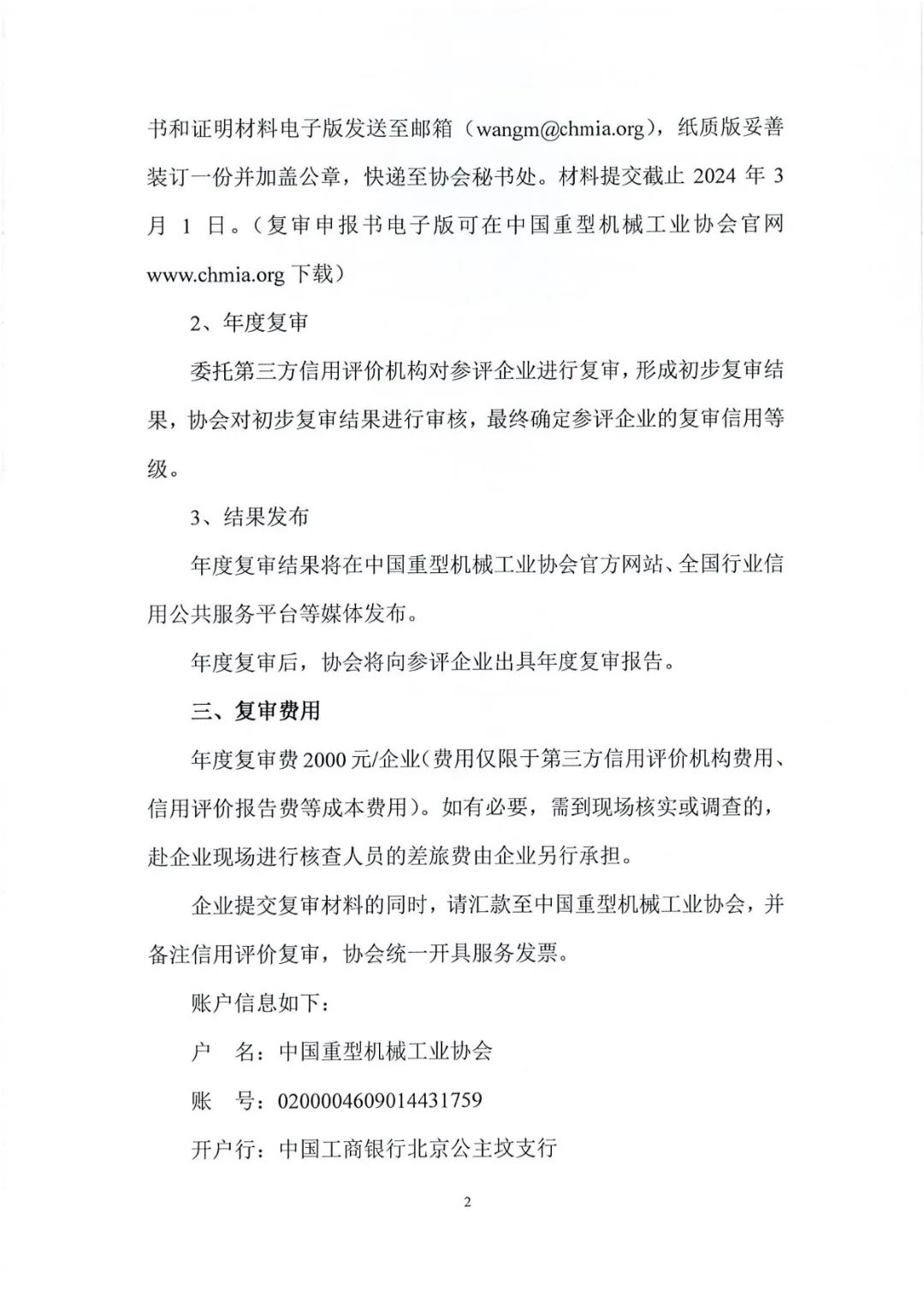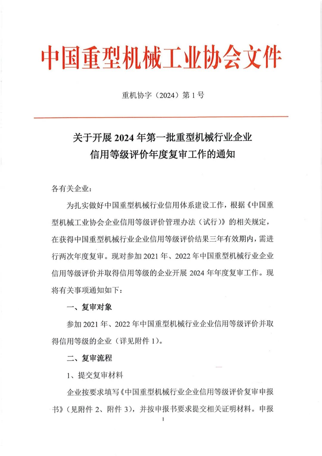 关于开展2024年第一批重型机械行业企业信用等级评价年度复审工作的通知