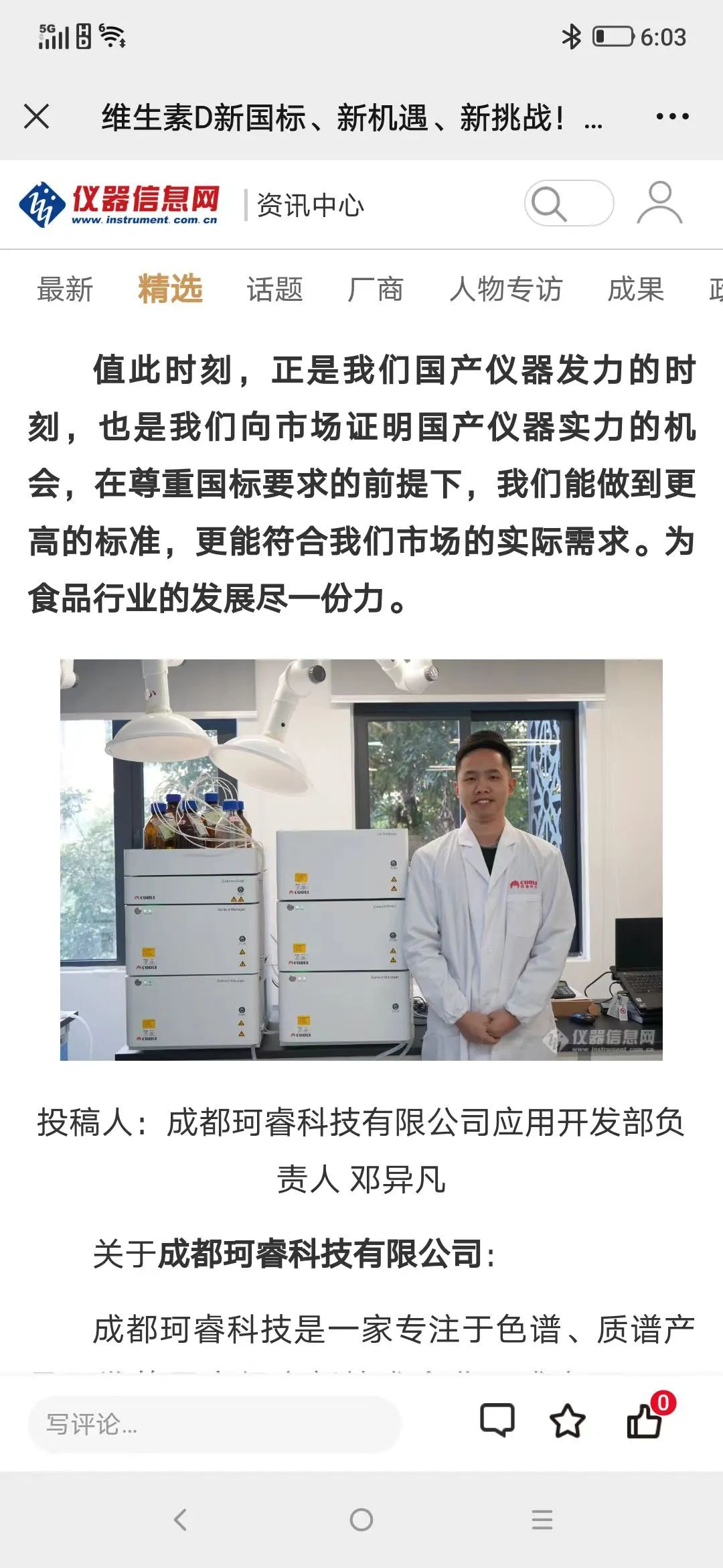 为了进一步促进维生素D检测工作的交流与合作,仪器信息网特别发起“维生素D新标准解读与应对”话题,专访成都珂睿科技有限公司,分享珂睿科技最新Pisces-Vitamin二维液相色谱维生素检测方案。