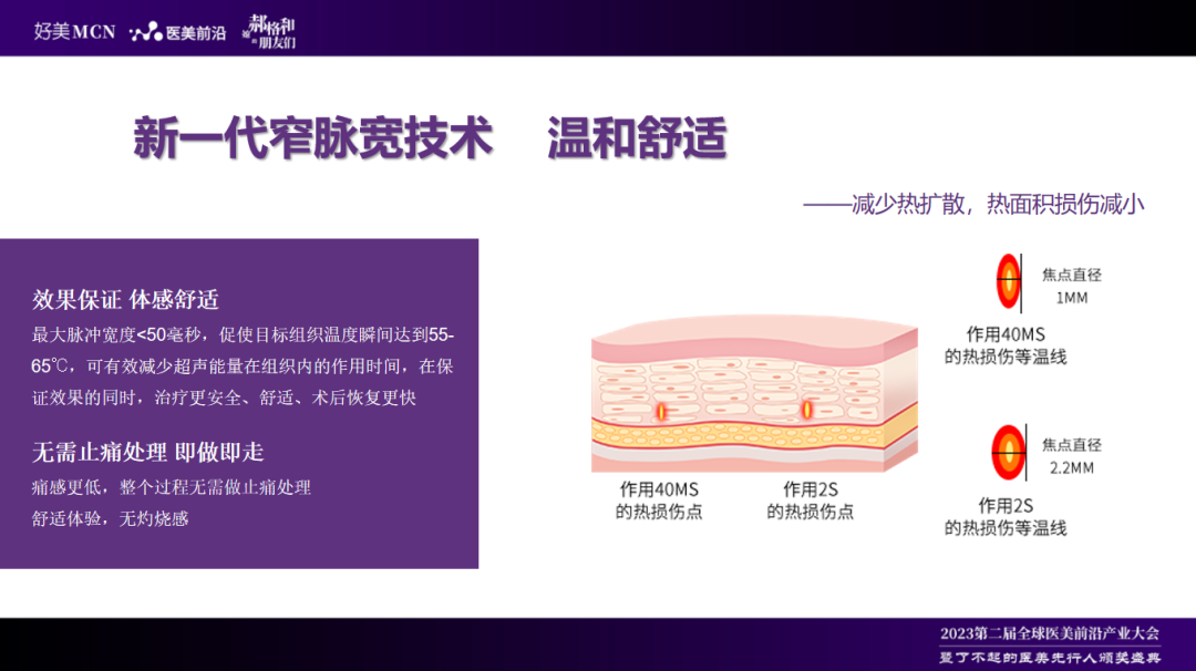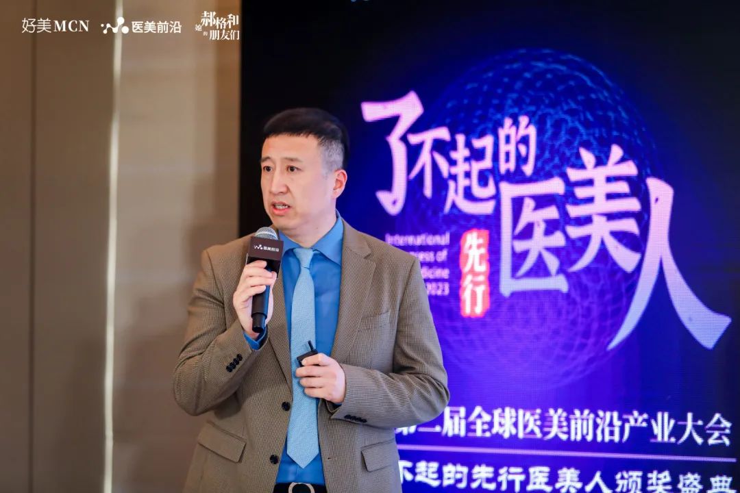 在2023年全球医美前沿产业大会中做了《超声仪器在医美领域的‘不卷’!》的内容分享。他介绍了目前医美市场上超声抗衰设备的技术以及应用类型,并表示