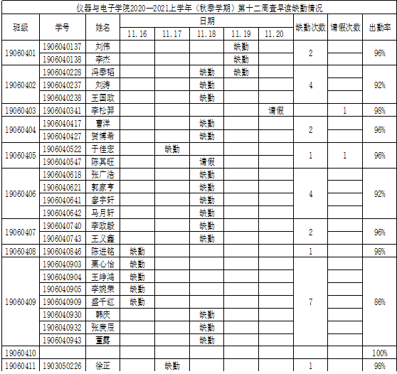 注:1、对于以上缺早读的同学将严格按照我院《仪器与电子学院学风建设部早读管理办法》处理,处罚措施如下: