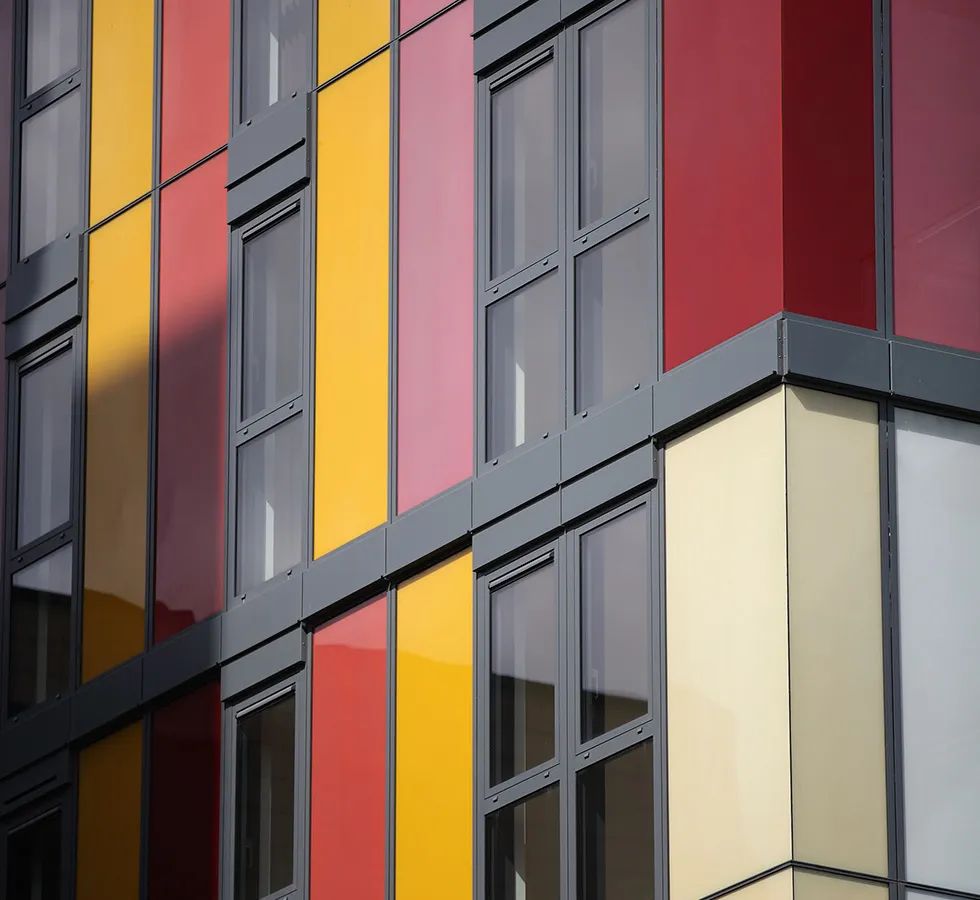 无论是高端的全新建筑、翻新的旧建筑或是现代化的商用建筑,多彩的玻璃幕墙可以填充街景、塑造生机、温馨的感觉以及多样化的元素。为实现特定的颜色设计能够精确到每一处细节,铝合金五金的调色板覆盖了每一处可见的建筑材料,均可自由选择。