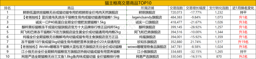 猫主粮销售排行榜