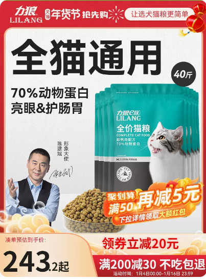 潜力单品:力狼猫粮20kg成猫幼猫通用蓝猫布偶流浪猫增肥全价猫粮猫食40斤装