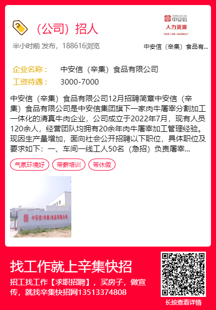 联系时请告知在找工作就上辛集快招网!上面看到的