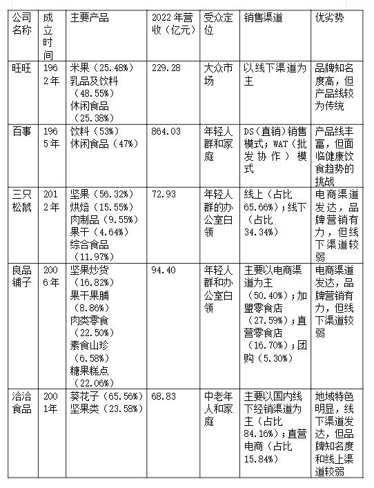 2022年休闲食品行业主要品牌概况: